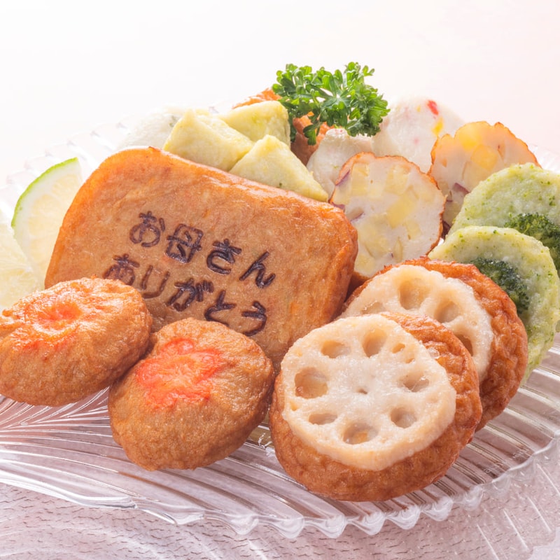 「お母さんありがとう」のメッセージ入りさつま揚げ
