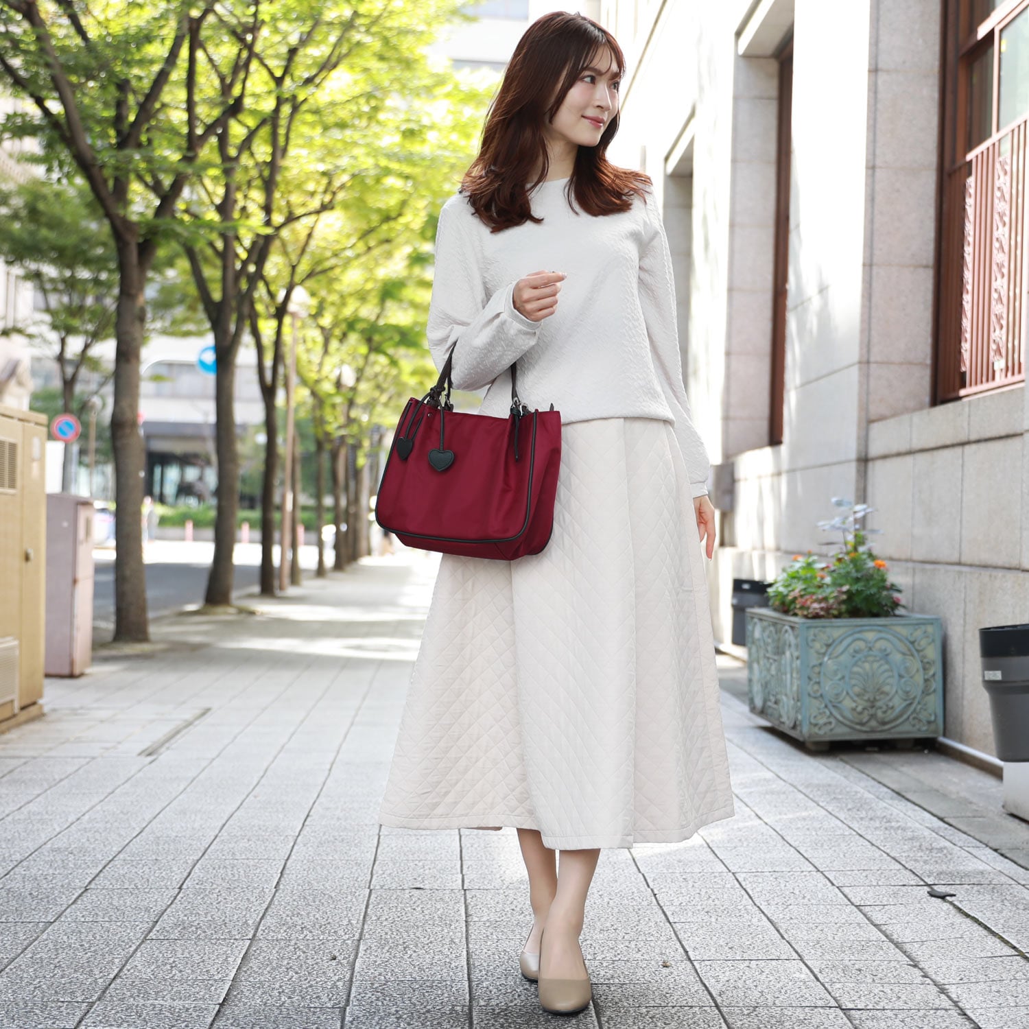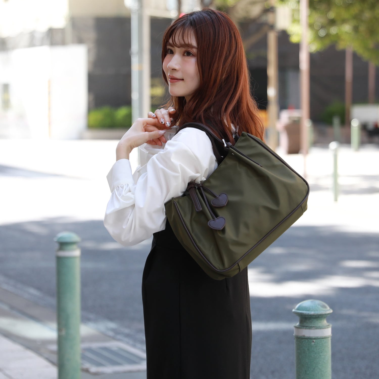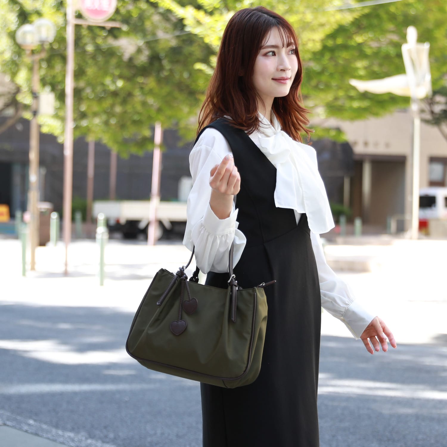 A4対応ほど大き過ぎず、あおりポッケトがあり、そこそこ荷物が入る軽量・ナイロン素材のバッグをず~っと探していて、やっと納得の商品に出会えました!モデルさんが持った写真が無いためバッグのサイズ感がつかめず、購入決心まで随分悩みましたが、サイズ、色、素材、機能とも全て希望通りだったので、ホント買ってよかったです。 基本的にバッグはオン、オフ一緒でほとんど持ち替えないが、どちらにも使えると思います。普段は長財布とマチのあるポーチ、スマホが入ればよいが、通勤時は弁当箱も入れたかったのが叶いました。加えて小さめの飲料ボトルなども入れられるし、小ぶりながら多収納かつ軽量で、価格も安めで嬉しいです。