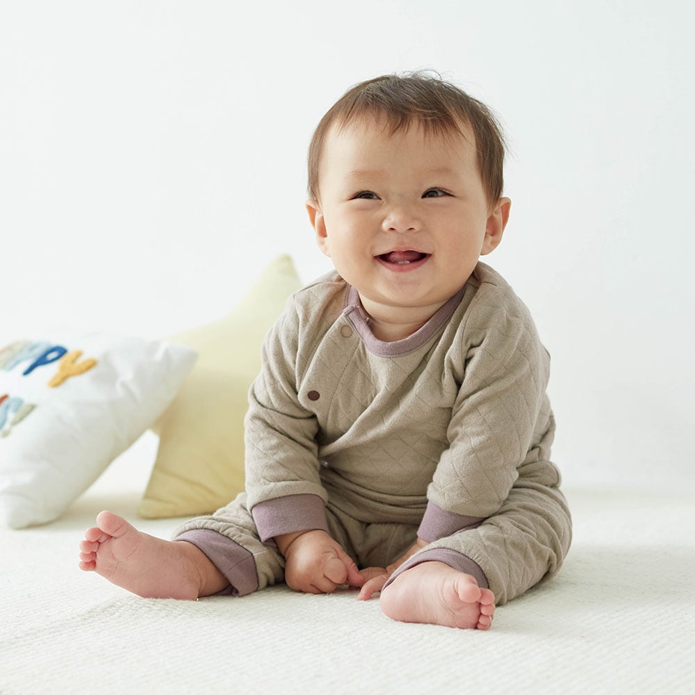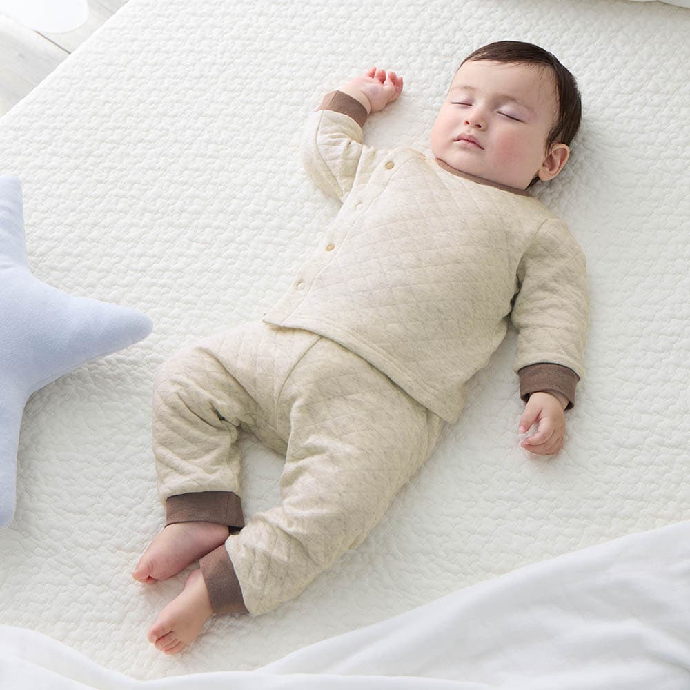 10ヶ月、9kgの子供に。つかまり立ちが好きなのでロンパースタイプは着せにくく、70cmサイズのセパレートのキルトパジャマを探していましたがめちゃくちゃ気に入りました!