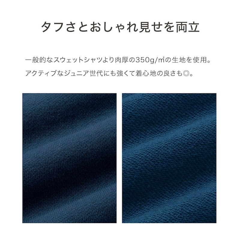 ・一般的なスウェットシャツより生地を厚くして破れにくい仕様に