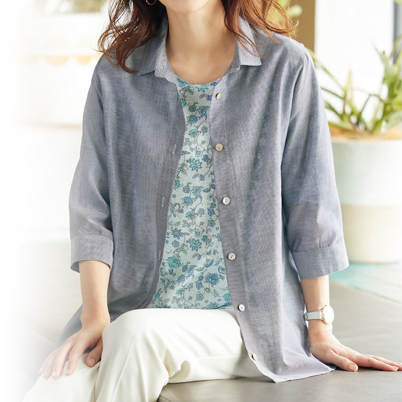 奥行きのある表情としなやかな風合いがシンプルさの中に上質感を演出。肘が隠れる袖丈も嬉しい。