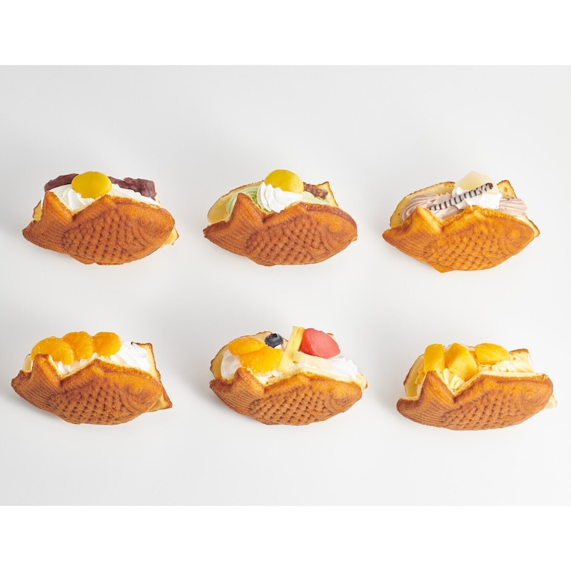 たい焼き風ワッフル生地にクリームやフルーツをサンドした、和っふる。角隠しに見立てたクリーム、色とりどりのフルーツはかんざし。