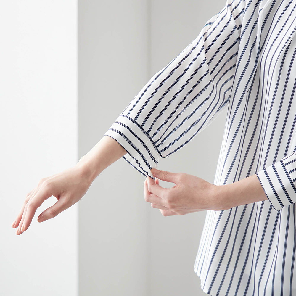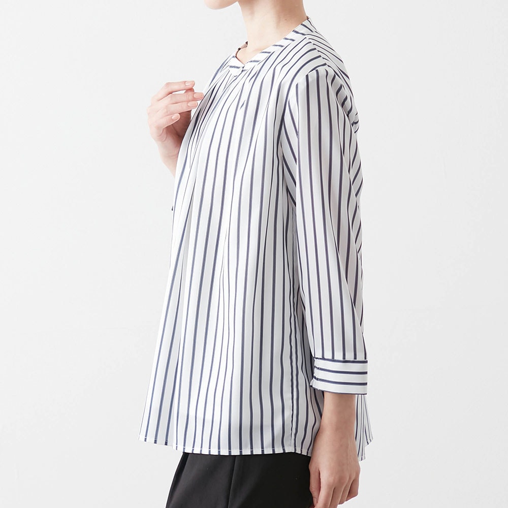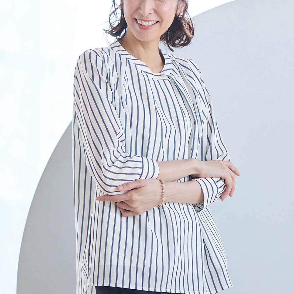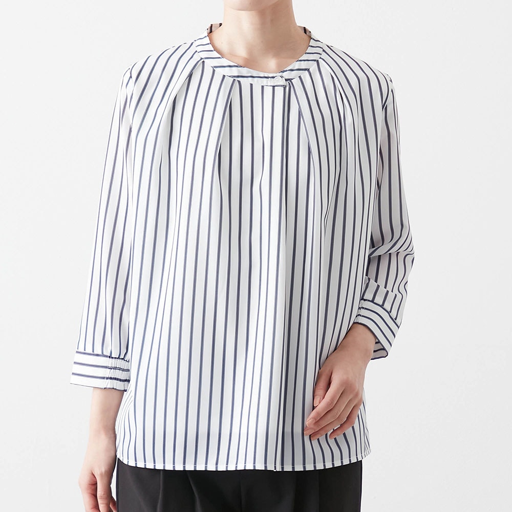 白いブラウスで、下着を気にしないで着用できるのは、思っていた以上に快適でした。 前のボタンも着やすいです。 着やすさとデザインがうまく両立していて、考えられているなあと感心しました。 ジャケットの下に着用できて、1枚で着ても、裾を出して着ても様になる。 アイロンをかけなくてもいい。 私のわがままな条件を全てクリアしていて、この値段で助かります。 汚れも落ちやすそうな素材です。 サイズはいつものサイズでぴったりでした。
