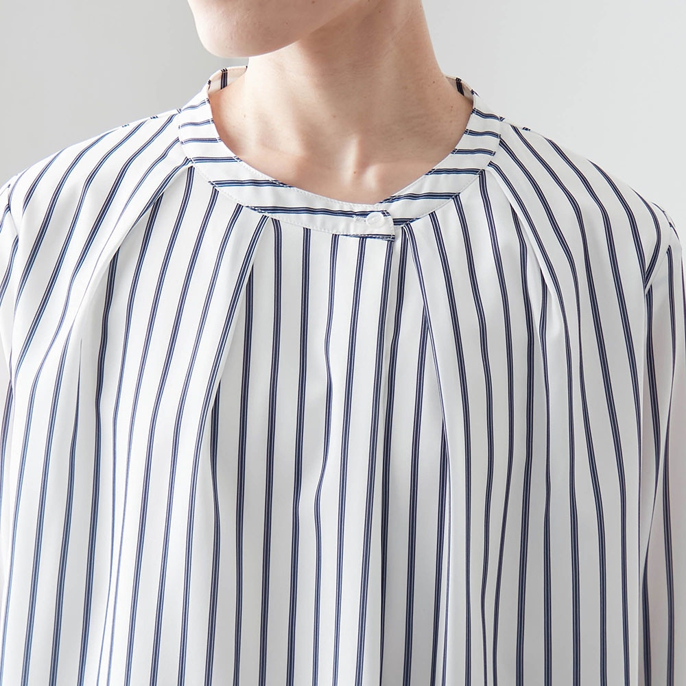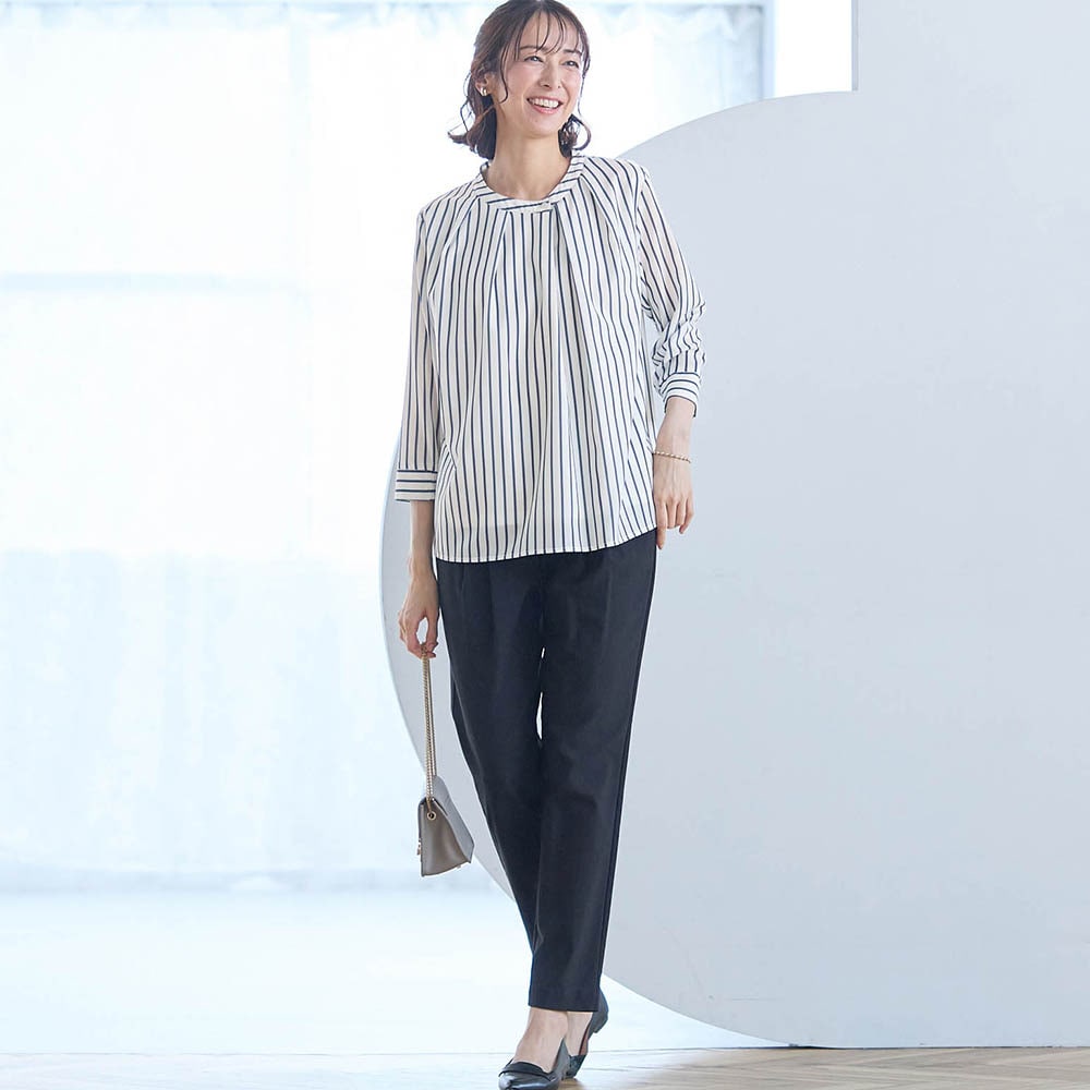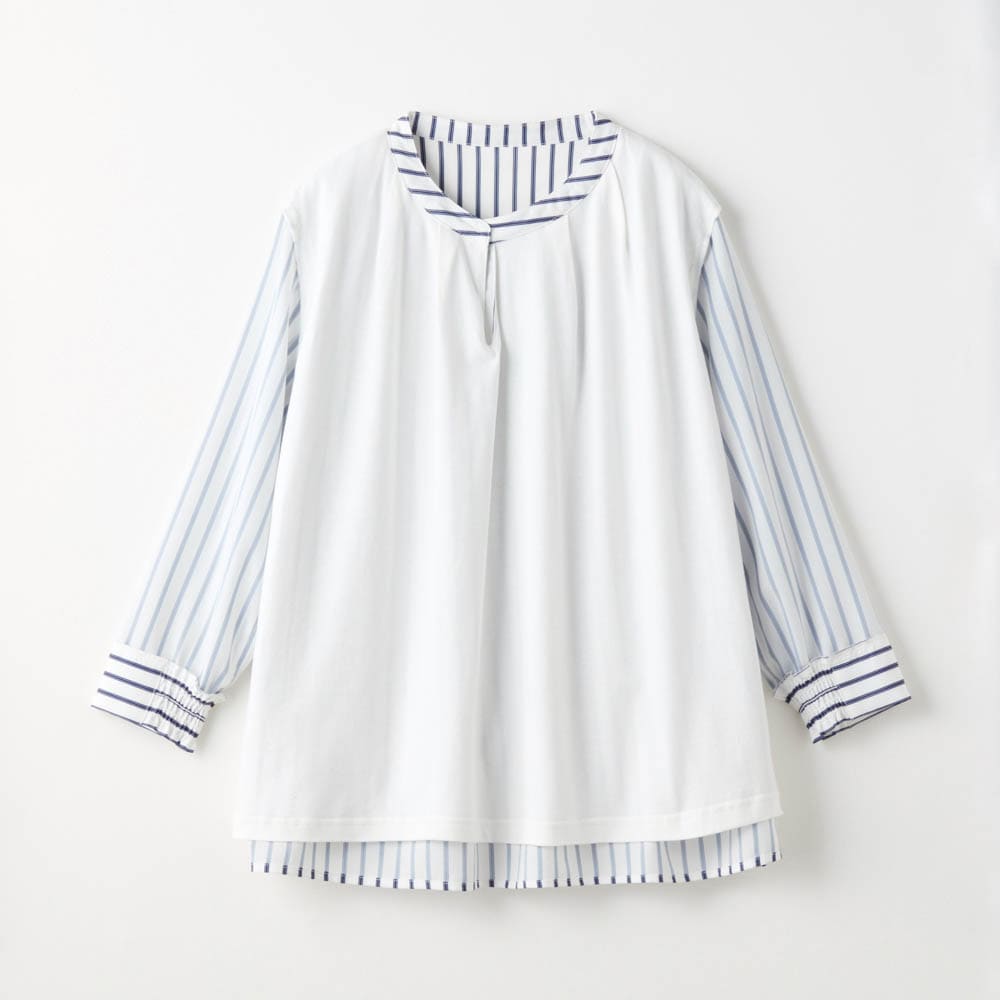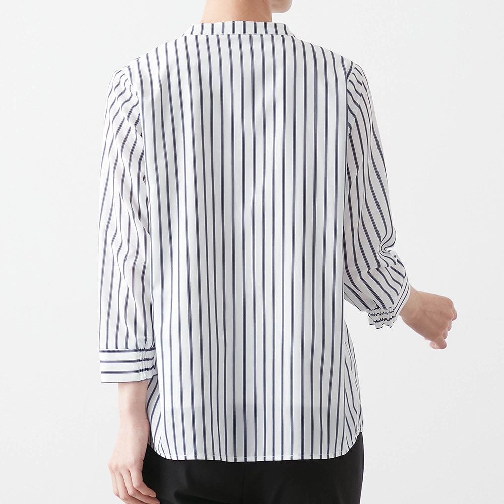 白いブラウスで、下着を気にしないで着用できるのは、思っていた以上に快適でした。 前のボタンも着やすいです。 着やすさとデザインがうまく両立していて、考えられているなあと感心しました。 ジャケットの下に着用できて、1枚で着ても、裾を出して着ても様になる。 アイロンをかけなくてもいい。 私のわがままな条件を全てクリアしていて、この値段で助かります。 汚れも落ちやすそうな素材です。 サイズはいつものサイズでぴったりでした。