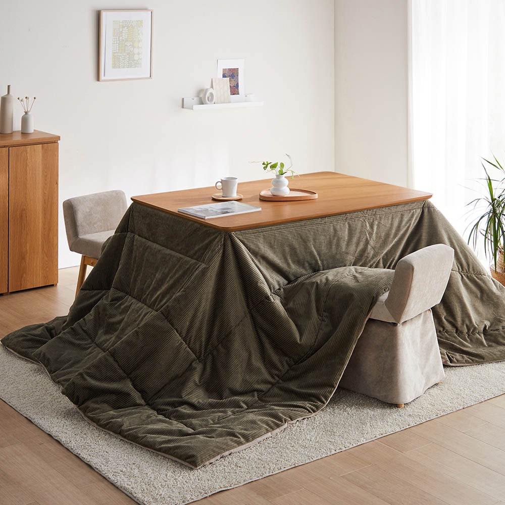 120サイズ、ダイニングテーブルとしても使えるこたつテーブル、届きました!前回、購入のミッキーのビーンズ形ダイニングと、リビングの中の色で調和できるか、届くまで心配でした。バッチリ調和しました。