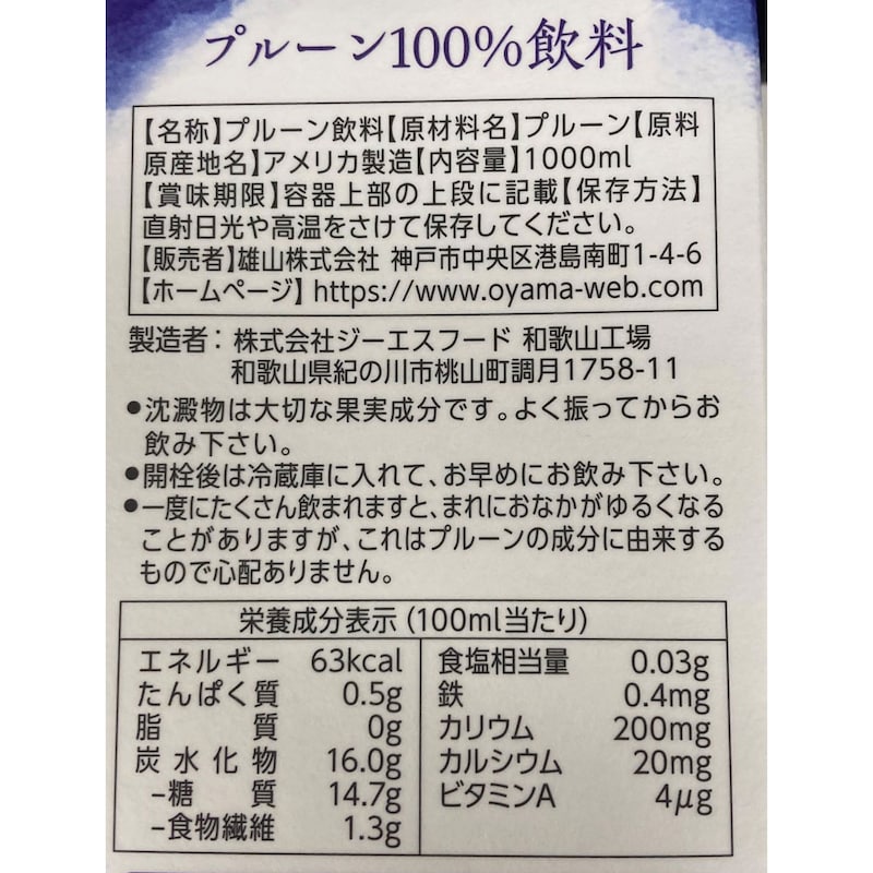 カリフォルニアプルーンジュース100% 1000ml×6本セット