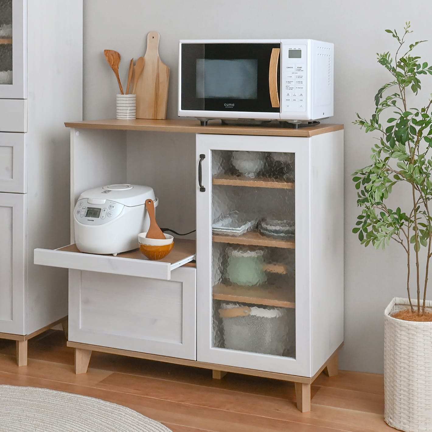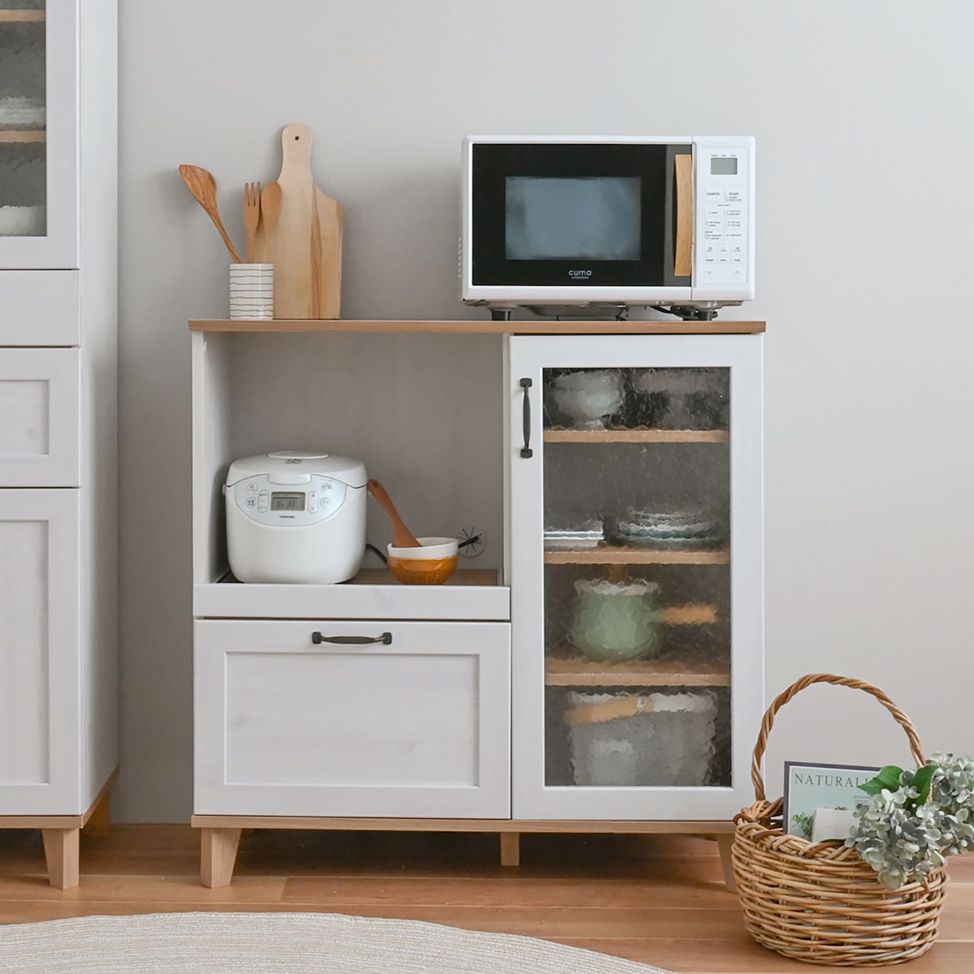 ●ロータイプの食器棚、またリビングのキャビネット、収納棚としてもお使いいただけるレンジ台