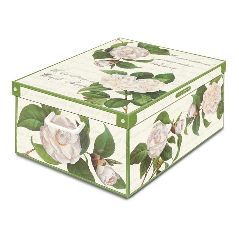 イタリア調の絵画的なバラが描かれた収納ボックスです。組み立てが簡単。軽いので持ち運びしやすいです。購入すると、同じ物を2つセットの注文になるので、違う柄も欲しい、と思いましたが、2つの箱を積み重ねて部屋に置くと、とても素敵なインテリアになりました。箱の上にも物を飾り置いて、センスの良い空間となり、部屋がグレードアップしました。毎日、眺めては幸せな気分になります。これをきっかけに部屋のピアノカバーや寝具も上品でロマンティックな物に揃え、満ち足りた気持ちで部屋で過ごす時間が長くなりました。お気に入りの物に囲まれて暮らすことの大切さを実感しました。ありがとうございました。