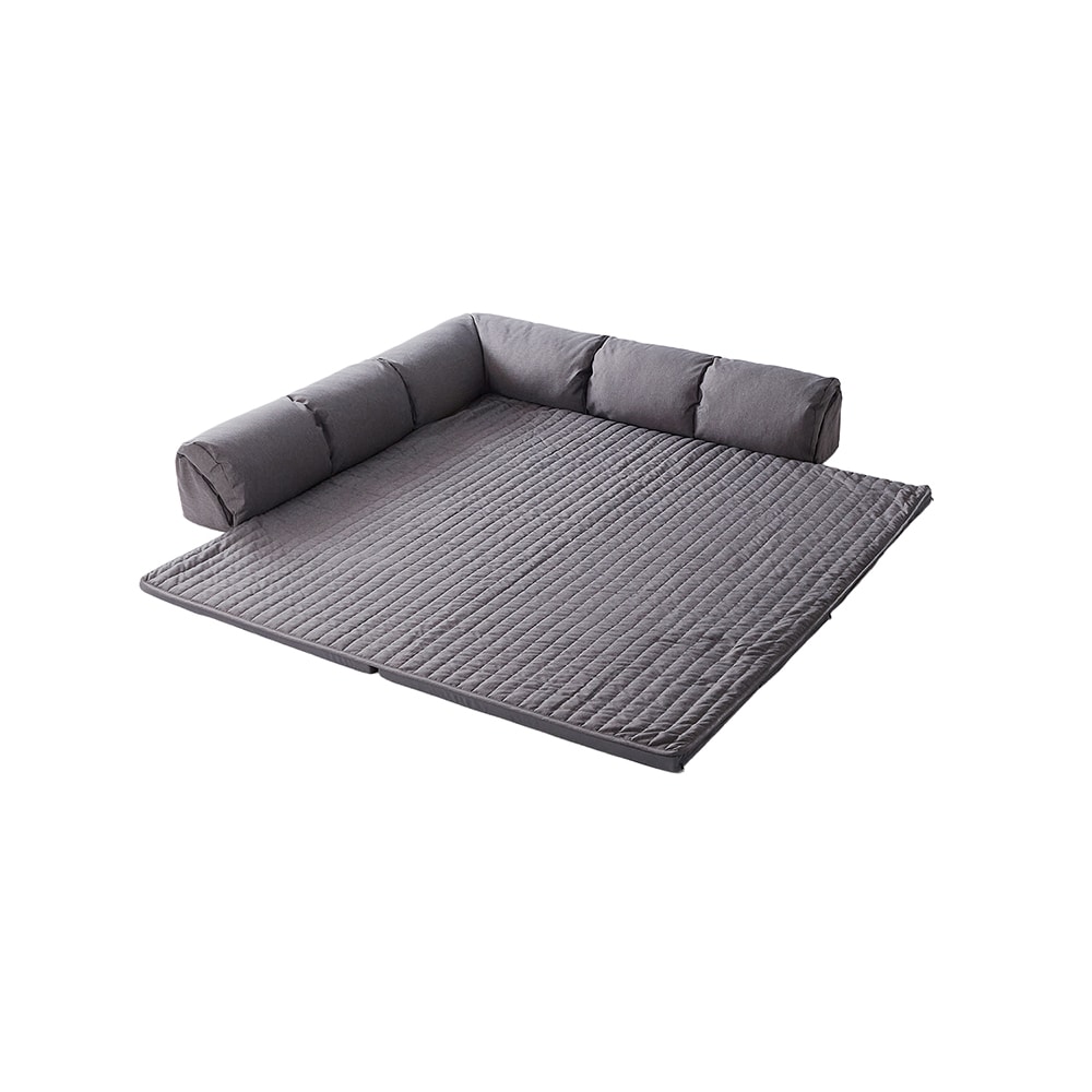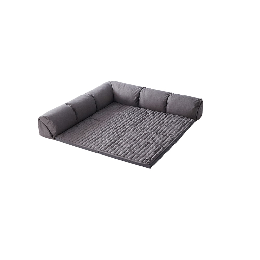 コーナークッションがずっと欲しいなと思いながら、これまでは比較的濃い色が多くてリビングをかなり占めるクッションなので汚れこそ目立ちにくいかもしれないですが、圧迫感があるかなーと購入を見送ってましたが、やっと新発売されたドタイプの明るめのくすみベージュカラーに思わず即購入しました! ラグが洗えるとはいえ、撥水加工はされておらず、赤ちゃんが居る家庭なのでいちいちファスナーを外して使うのがとても面倒です。 ですので、我が家は別の撥水加工された185×185のフランネルラグを上に引いて使用してます。 ラグは汚れ防止、撥水加工されてるといいなと思ったのが惜しいポイントです。 大サイズを購入しましたが、3歳1歳の子供が大喜びでごろんごろん転がって寛いでテレビを見てます。大柄の旦那と私の大人二人と子供二人でもまだまだ余裕があって素敵な家族団らんスペースになりました!とてもおすすめです!
