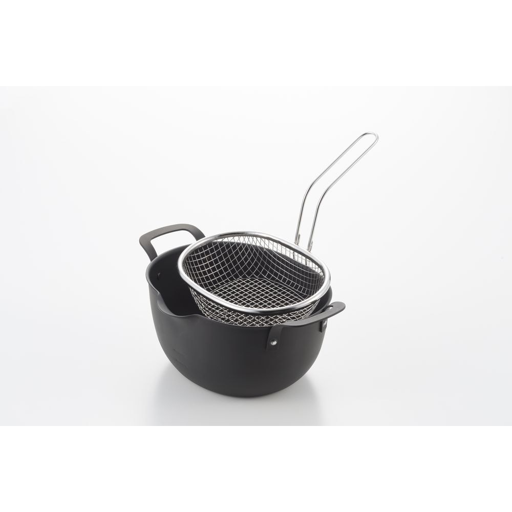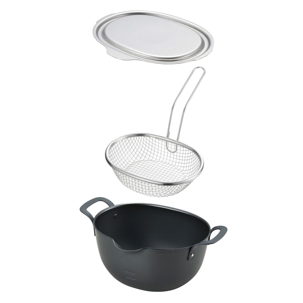 ●主材/鉄製揚げ鍋:鉄(シリコーン塗装)、専用ステンレス揚げザル:18-8ステンレス、専用ステンレス蓋:ステンレス鋼