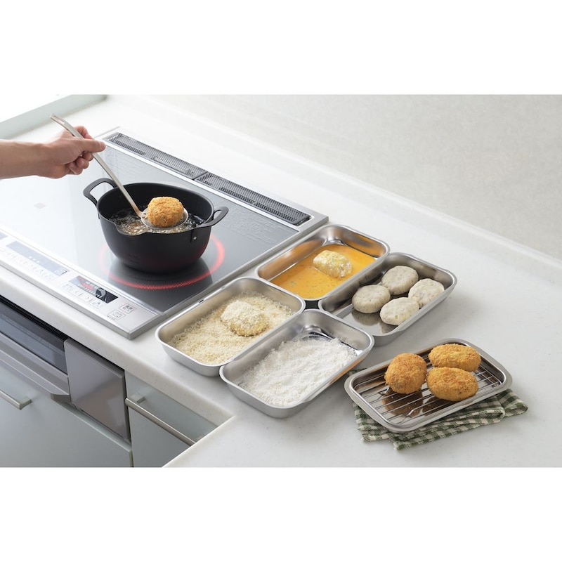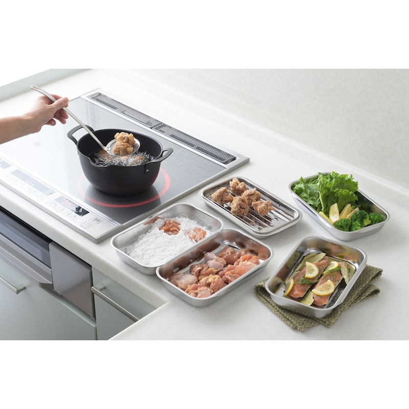 • 蓋をひっくり返すと下ごしらえや揚げ物用のトレーに