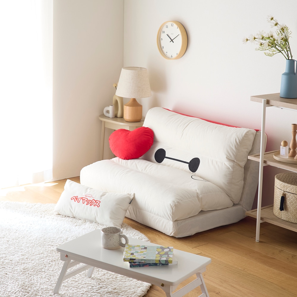 最高にかわいいです。 ミッキーのタイプを購入しましたが、部屋に入るたびにニヤニヤが止まりません。ディズニーホテルに来た気分…。 六畳に置いてありますが、ベッドとコタツしかない部屋に置いてあるので場所も取りません。 写真の雰囲気よりは硬めの生地です。(逆にベッドとして使うなら、このくらいの方がいいのかな?) クッションは思ったよりぺったんこでした。 広げてみましたが寝心地はまぁまぁです。 広げた時にしか見れないアップリケも可愛いです。 座り心地はフッカフカで最高。寝落ちしそうになりました。 届く際、折り畳まれたいわゆる写真のソファの形でダンボールに入って届くので、マンションや玄関が狭いお家は注意です。 座椅子のようにペキペキ調節ができます。ソファとベッドの切り替えも簡単でした。 最初、新車と同じ匂いがしますが、風通しの良いところに置いておけば何日か経てば消えると思われます。 迷ってらっしゃる方は是非買った方がいいと思います。