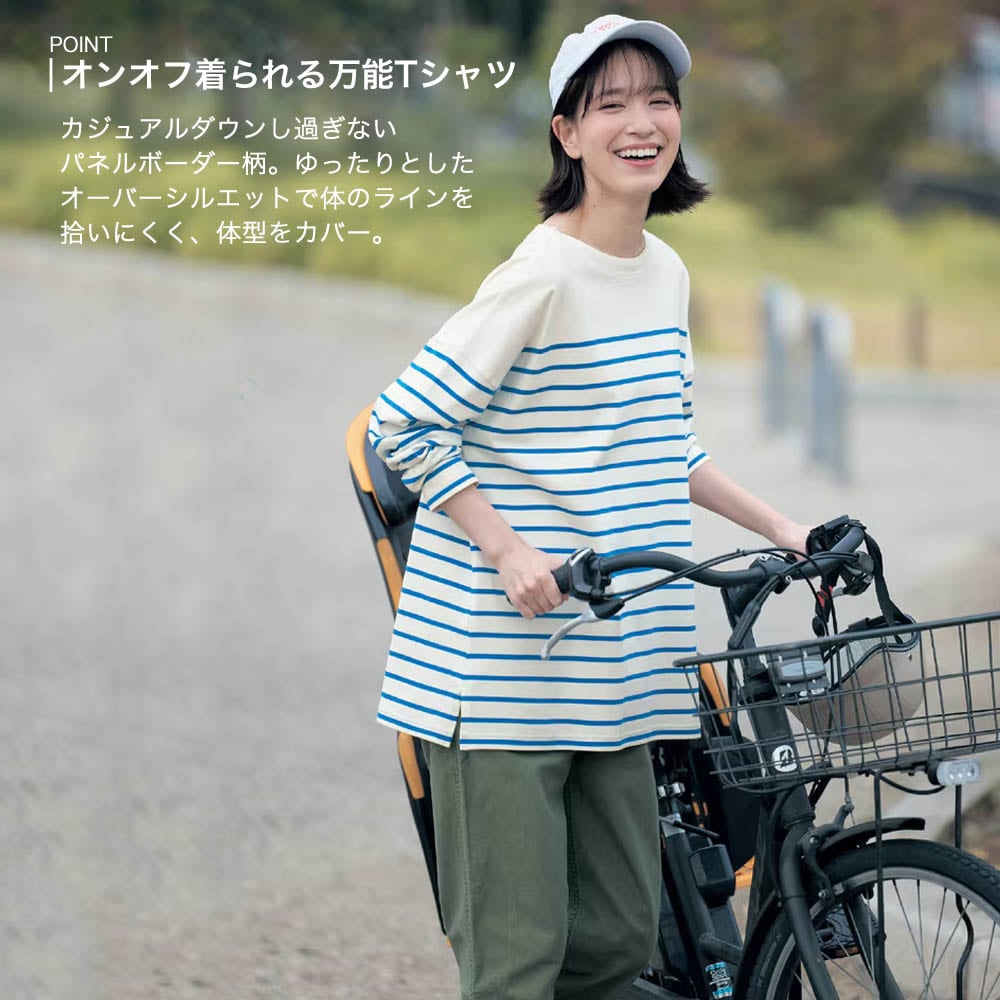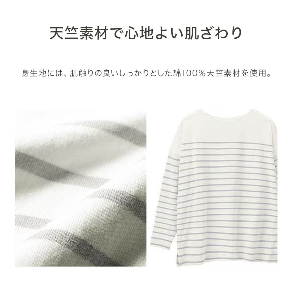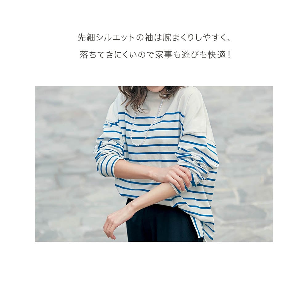 ゆるっとしたパネルボーダーをお安く探していたのでこちらは理想的!届くとグレーの色が上品で気に入りました。ゆったりシルエットがかわいいです。素材はちょっと薄手で柔らかい感じ。細めのパンツを穿けば体型カバーにもなりそう。 袖をまくるとちょうどいいところで止まるのでそこも気に入っています。