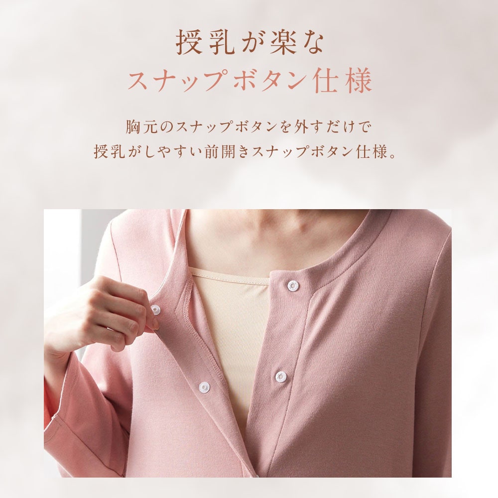 ボタンがスナップなのも理想的でした。一人目の出産の時に、授乳できるボタンタイプ、着物タイプ、綿タイプ、と色々買いましたがどれも着にくかったり洗ったらゴワゴワしたり脱げやすかったり…だったので、こんなに希望通りのパジャマに出会えて良かったです!