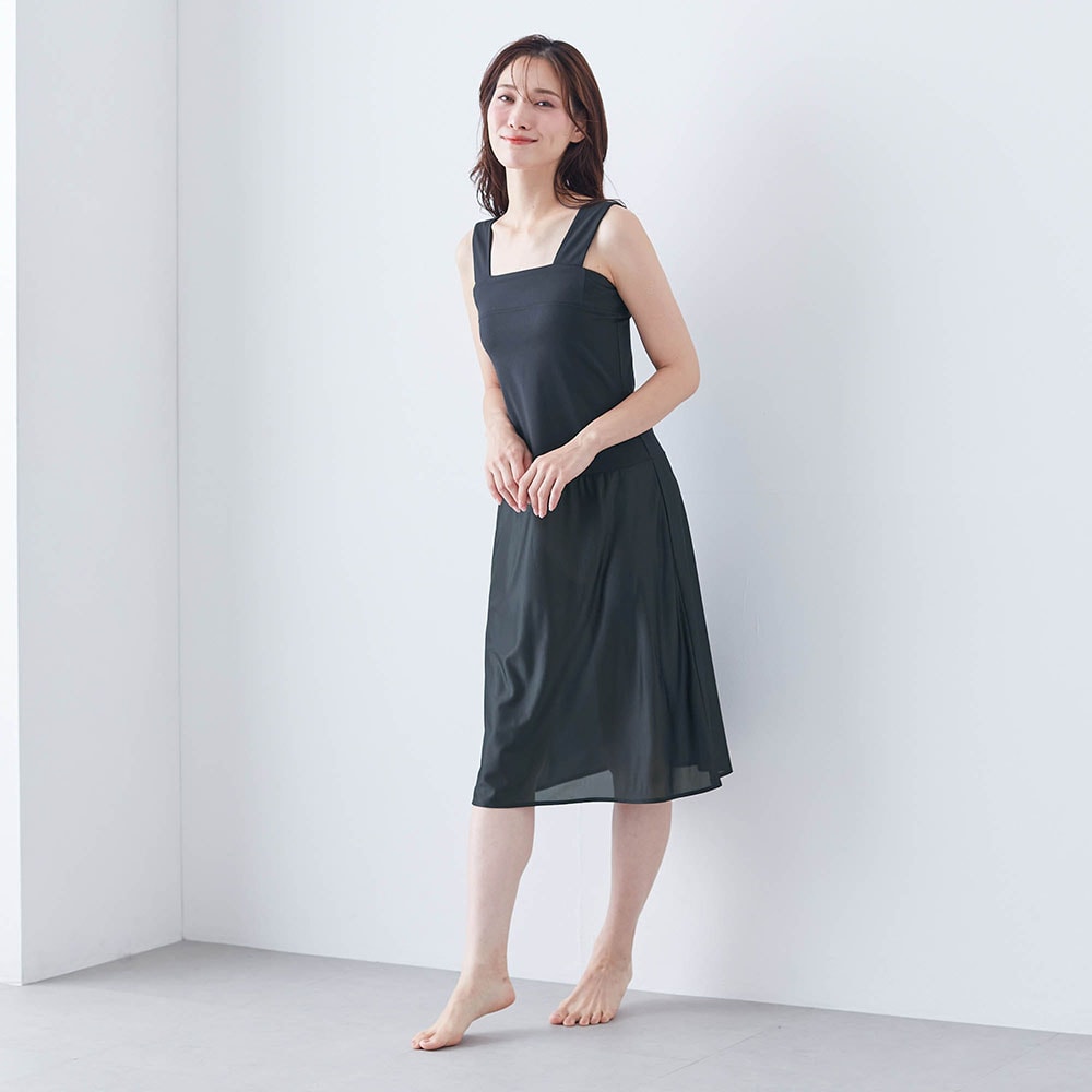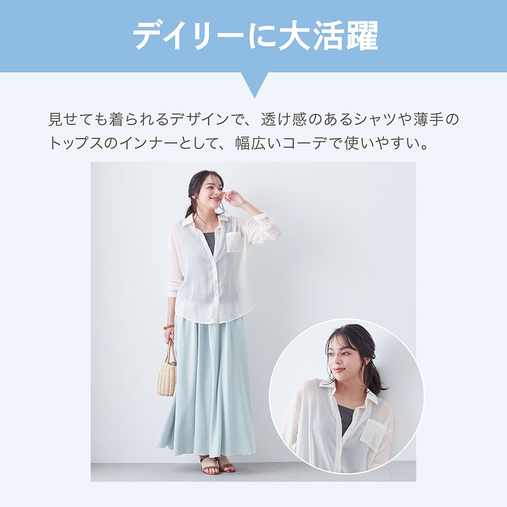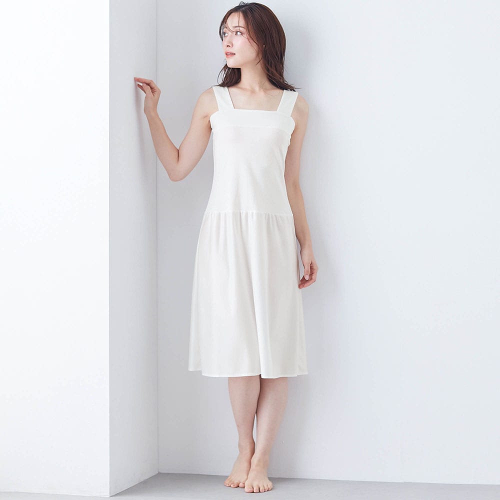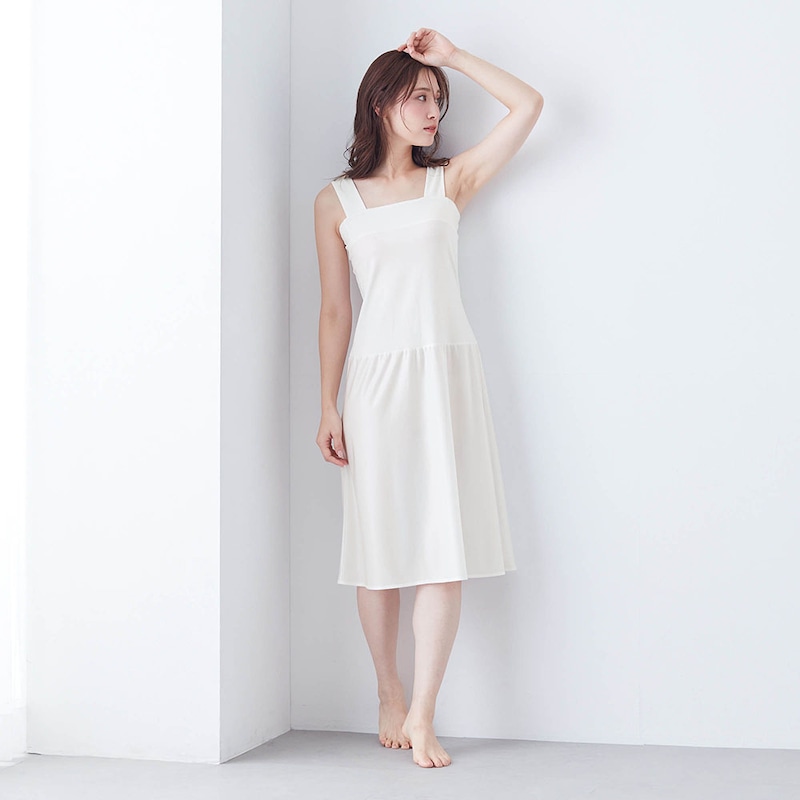 以前からこのタンクトップは持っていましたが、いつもスカートなので他のスリップばかり着ていました。このタンクトップにスリップが付いてるといいなーと思っていて この商品の白を見つけて即買いしました。白はなかなか売っていなくて・・・ ベージュや黒はスカートに響くことがあり特に白のスカートを履くときは下にも白で シャキッとした感じがいい時があって。 長さは身長155㎝の私で膝下3㎝位。ロングスカートを履くことが多いのでちょうどいいです。 また買い足す予定です。