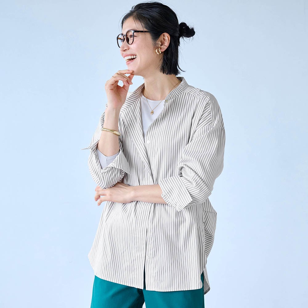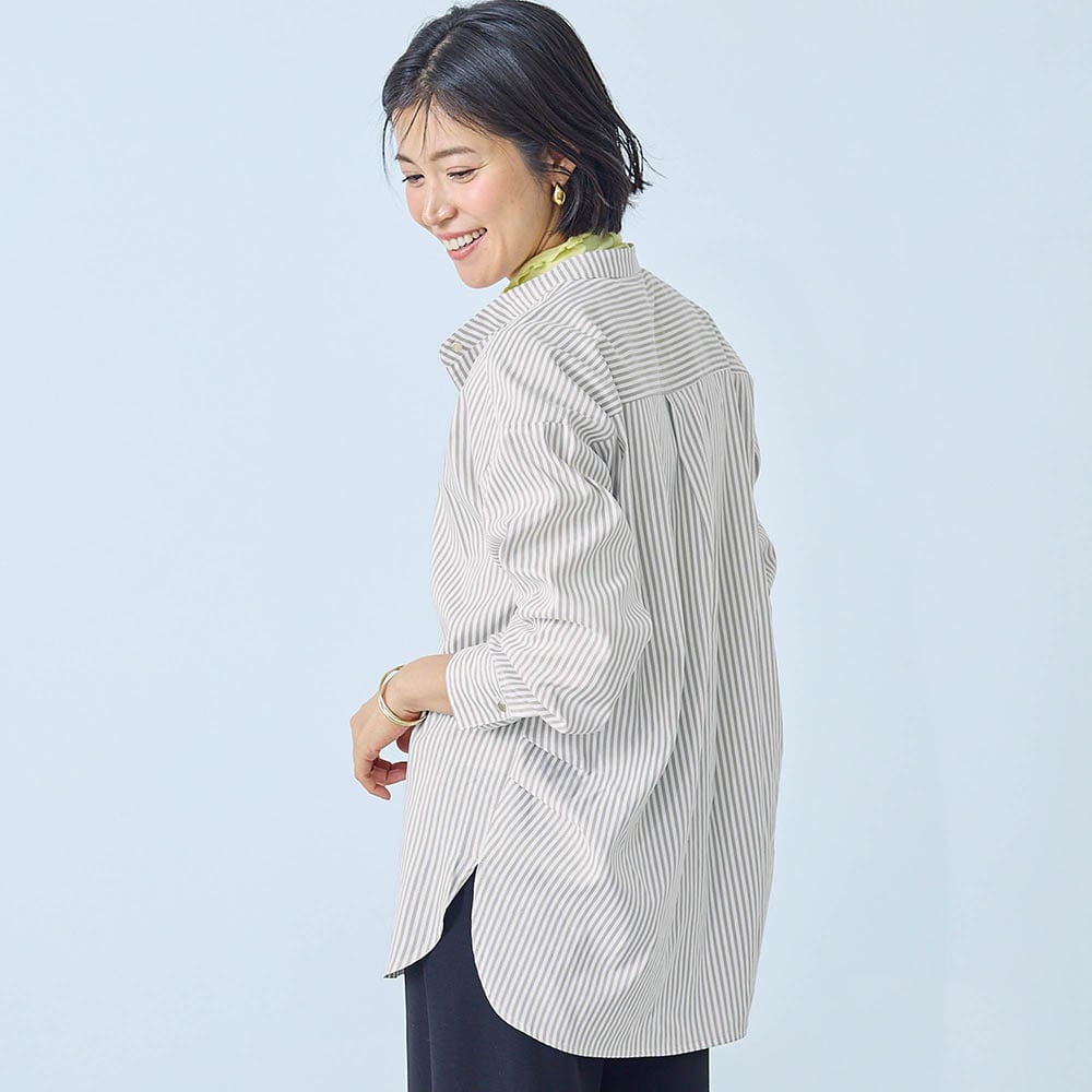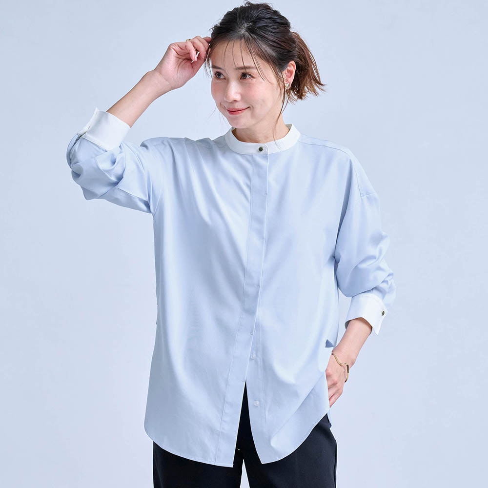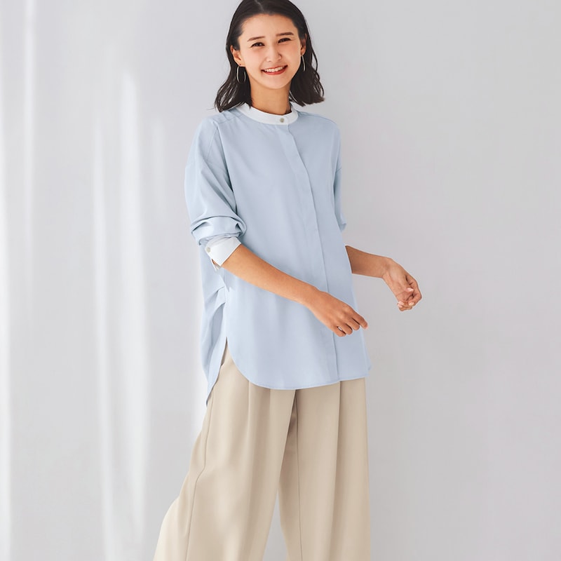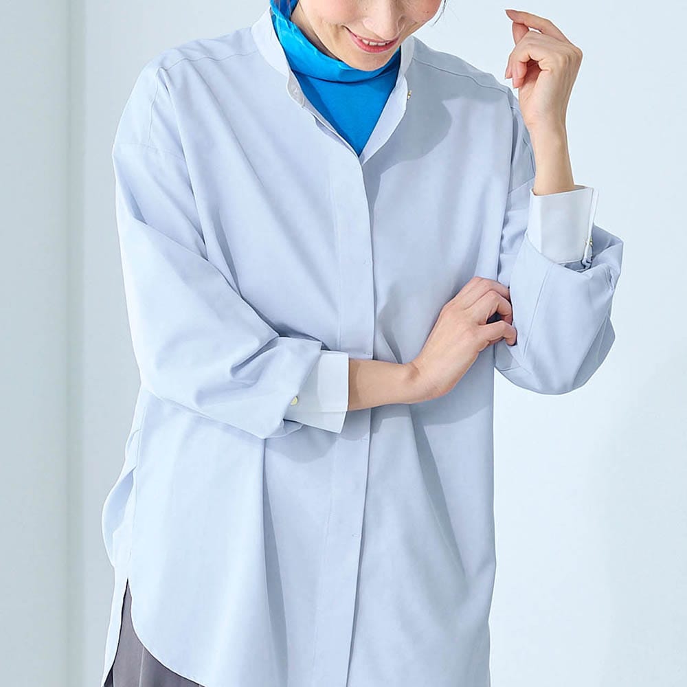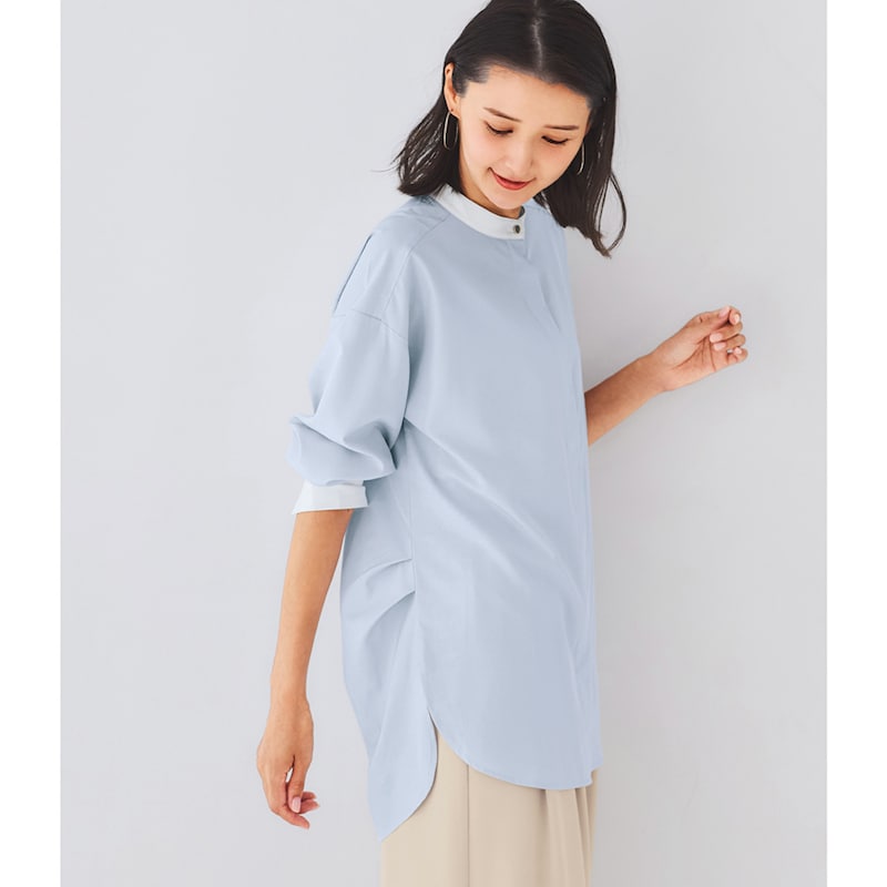 しわになりにくいので、簡単に着られる。普段どおりLLを注文したが大きすぎたか?面倒なので交換はしませんが、脇にタックがはいっているので後ろ見頃もかなり余裕があって、だぼっとしてしまう。一つ小さいサイズでもいいと思う。