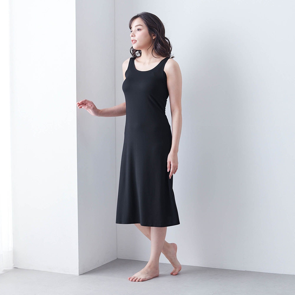ロングワンピースの下着用に購入。最近は裏地無しのワンピース・スカートばかりになって困っていました。ペチコートはウエストがもたつきがちだし、通常丈のスリップはロング丈ワンピorスカートには短すぎます。こちらはいい丈感でよかったです。汗取り仕様の脇高+背中カバーも良き。欲を言えばもう少し薄くて軽い素材ならよかったですが、汗取り機能を考えると難しいのかなと思いました。