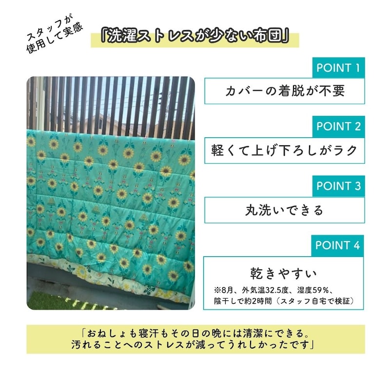 ・程よい重みが心地よく、包まれて眠ると落ち着く