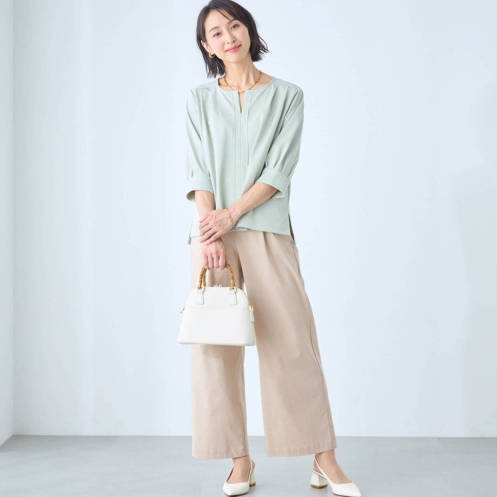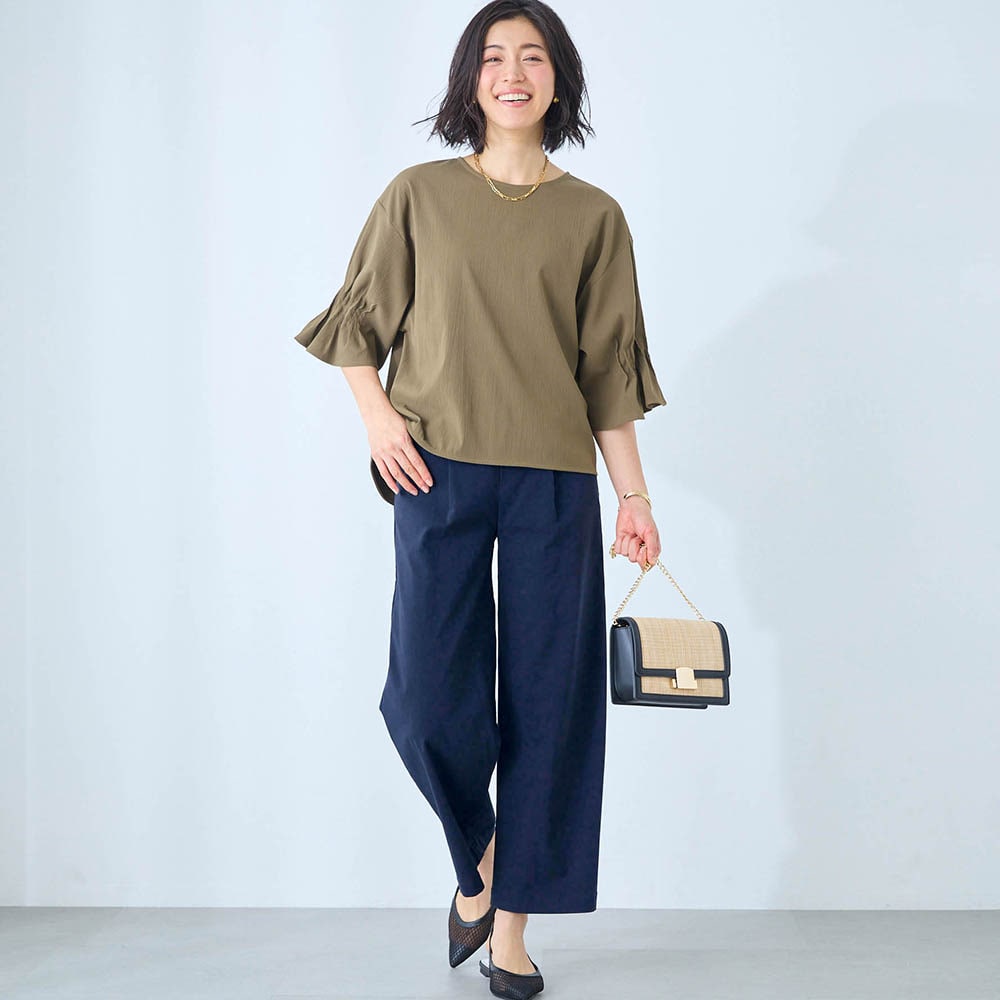 初夏から秋にかけて使いやすそうなパンツです。生地にハリがあり涼しげです。