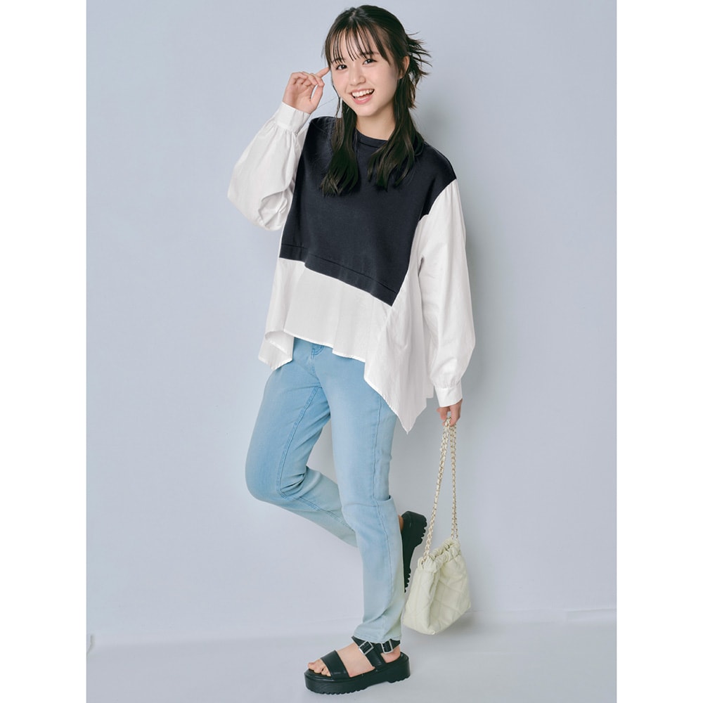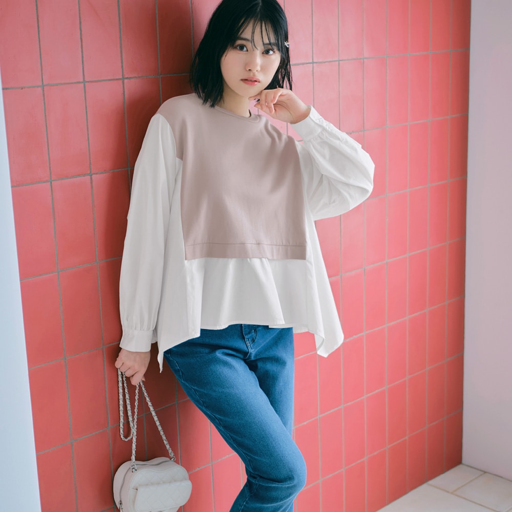 中2の娘に買いました。ペールトーンなピンクがやわらかく、ぶりっ子的なひらひらではなくて、とてもかわいいです。スキニーなデニムと合わせて着て、とても喜んでいました!
