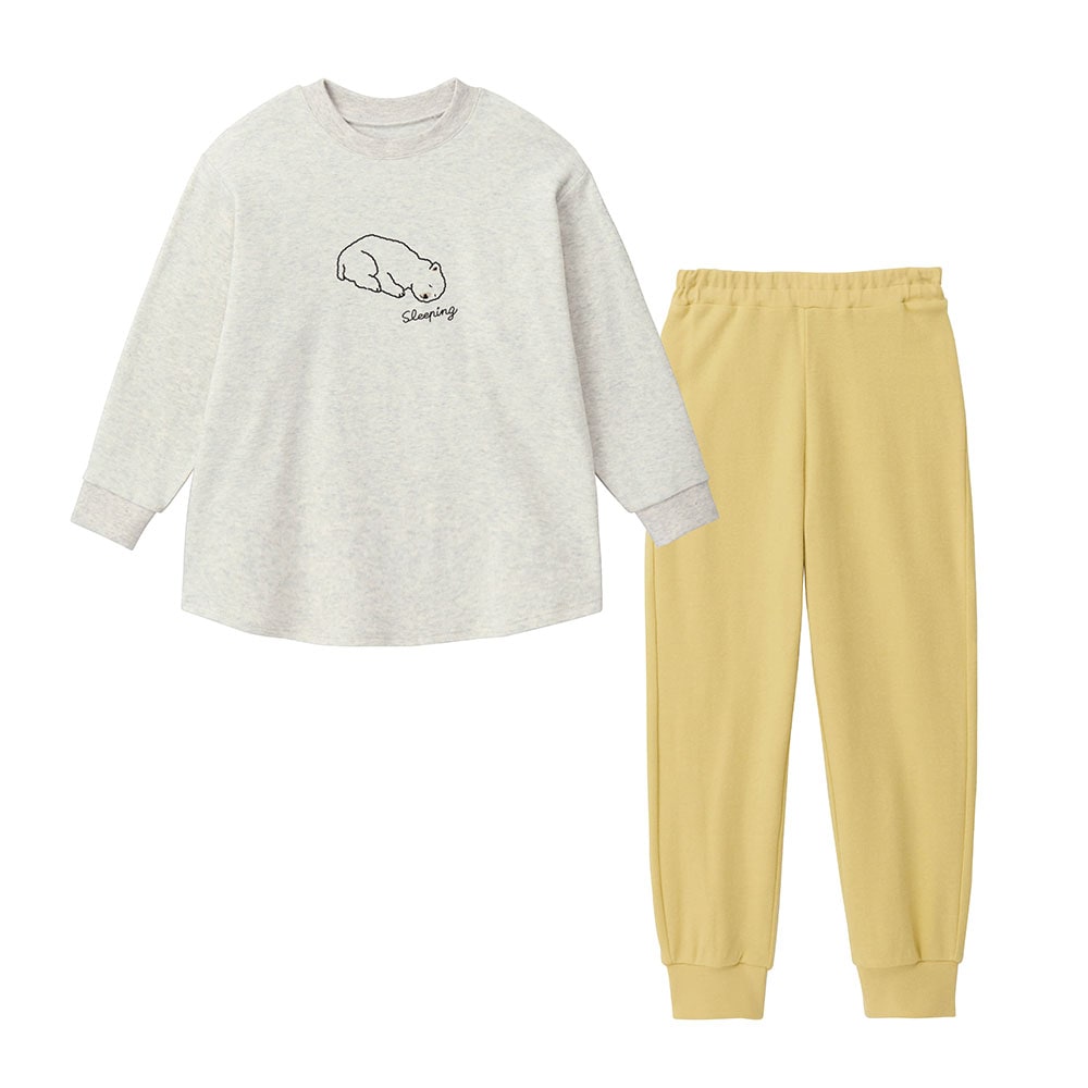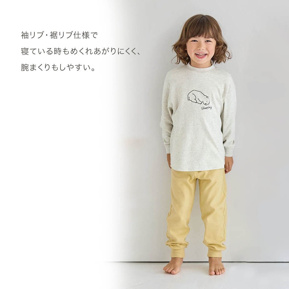 分厚くはないですが、しっかりした生地なので、温かい布団に入って寝る前提なら、夏以外のオールシーズンに使えると思います。肌ざわりも気持ちよさそうです。手首、足首の部分が冬場は乾きにくいですが、綿素材なので仕方ないかなとは思います。