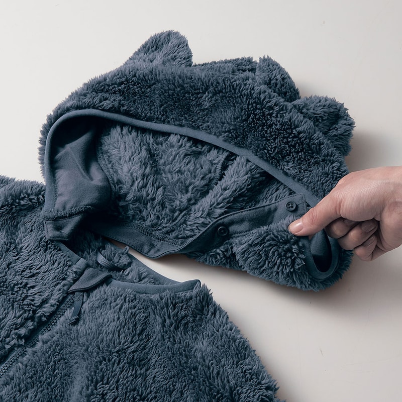 モコモコで耳としっぽが可愛くて購入しました。子どもも気に入ってよく着ています。暖かそうです。フードのボタンがよく取れてしまうので、スナップボタンだと尚良かったです。