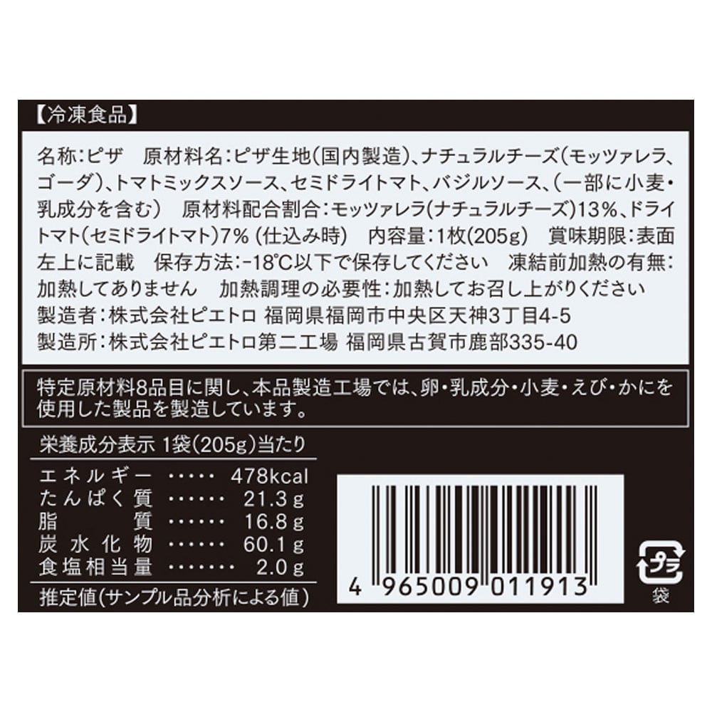 そんなレストランの厨房さながら、生地にトッピングをのせる工程も1枚1枚人の手で丁寧に作る、ピエトロのおいしさが詰まった冷凍ピザです。温めるだけで手軽にレストラン仕立ての味わいをお楽しみいただけます。