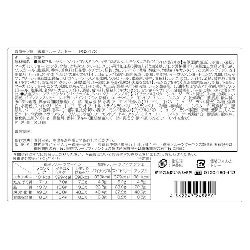 ●銀座フルーツクーヘン(メロン&ミルク・イチゴ&ミルク・レモン&はちみつ):各2個、銀座フルーツフィナンシェ(パイナップル・ストロベリー・アップル):各2個
