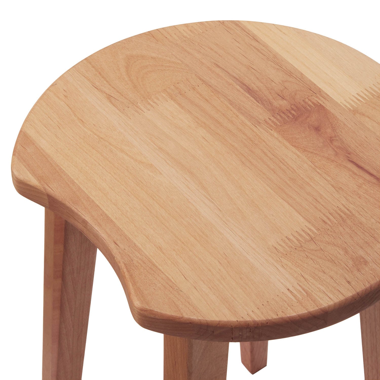 ただ、座面の木目ががっつり違う色味同士で組み合わさっており、白っぽい部分に、茶色のガムテープを貼りつけたようなギザギザの継ぎ目がはっきりわかります。