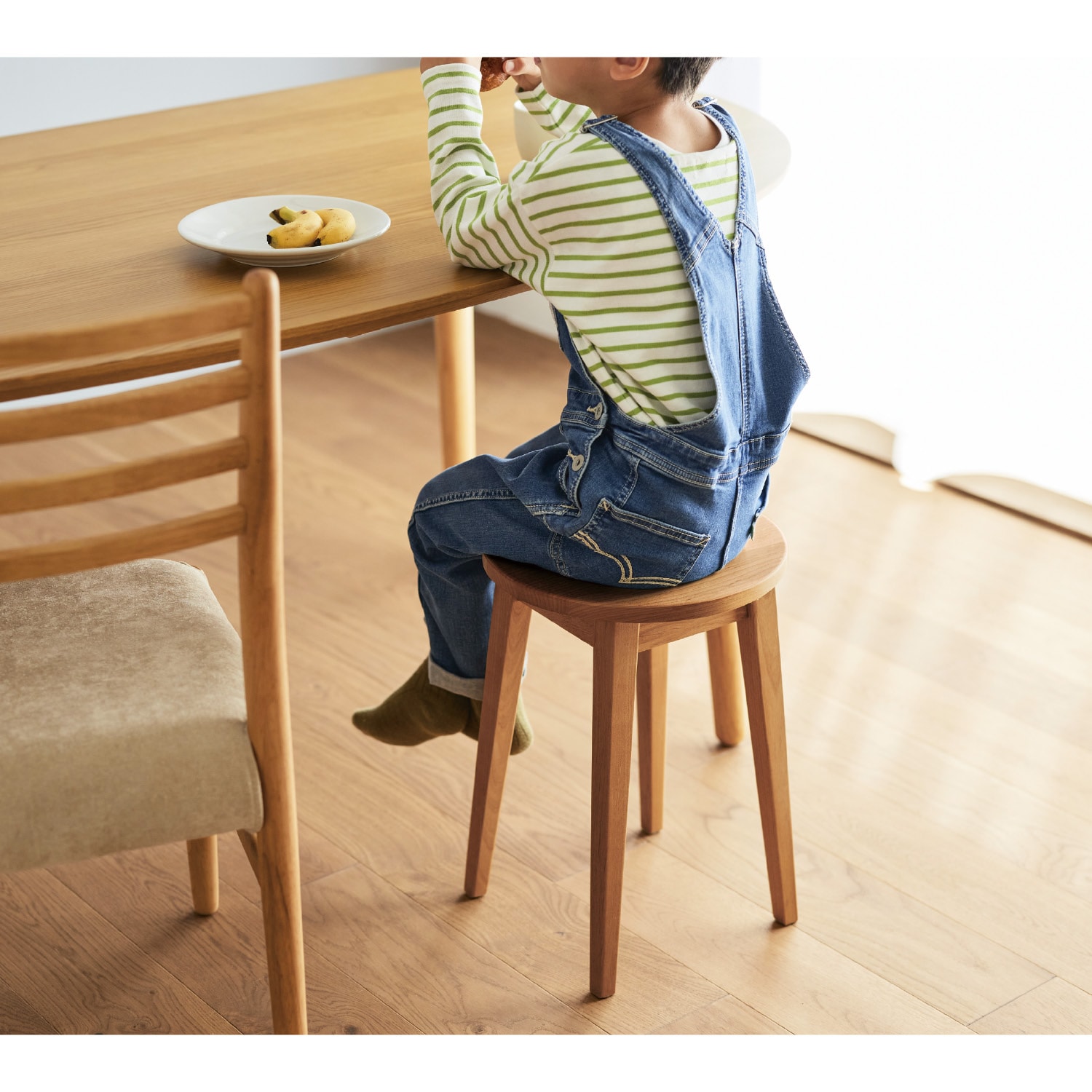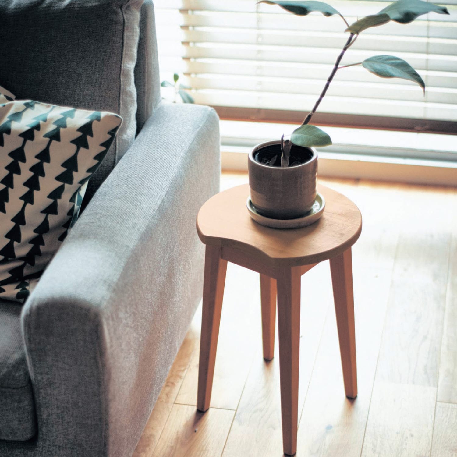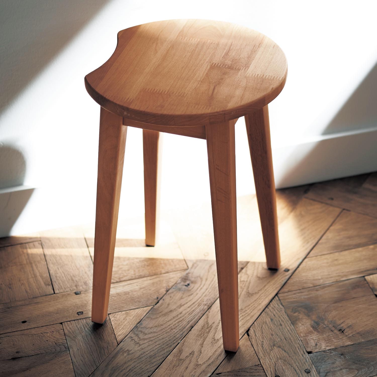 寝室に購入しました。トップが平らなので、座る以外にちょっと物を置くのにも便利です。天然木でナチュラルな風合いが気に入っています。部屋がとてもおしゃれな雰囲気になります。
