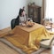 テーブル面がよくある長方形のこたつより一回り小さめなので、長方形用の布団をかけると布団に余分が生まれてどの位置でもしっかりかぶれます。