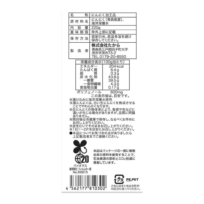 生産者の方たちが真心こめてひとつひとつ収穫した青森県産のにんにくを海洋深層水に漬け込み、温度と湿度だけでじっくり黒くなるまで熟成させました。