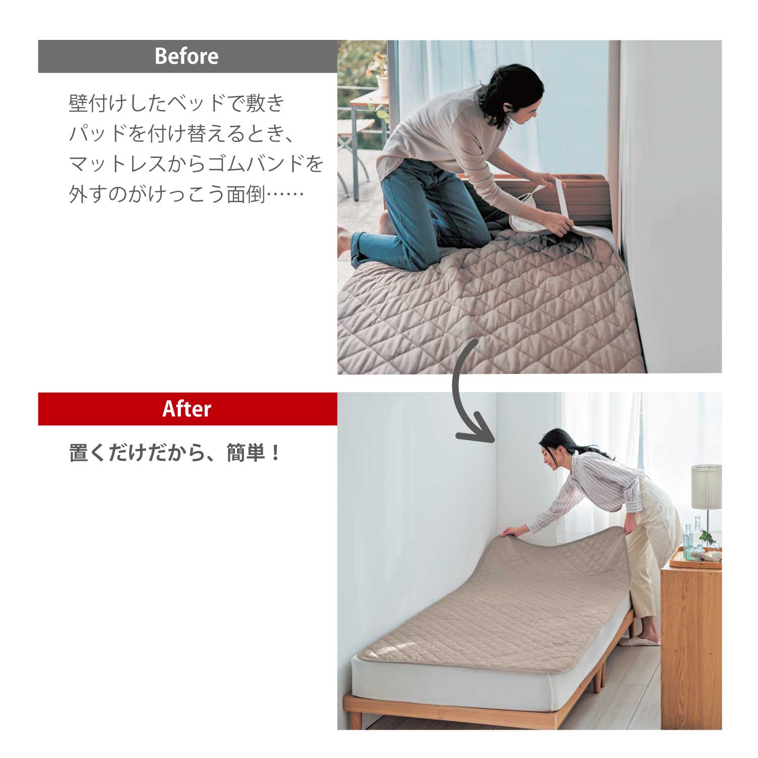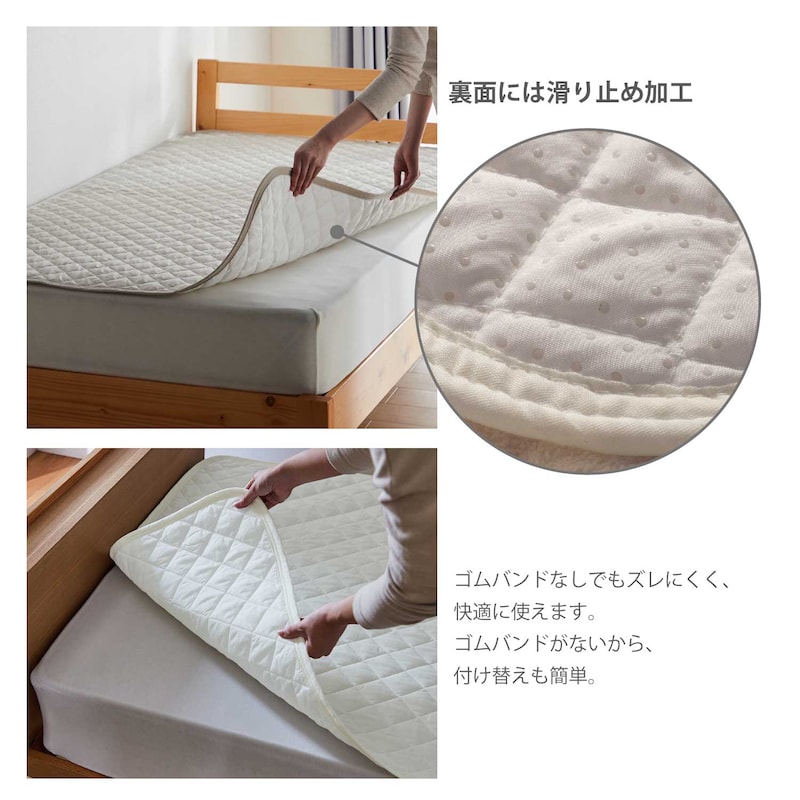 置くだけシリーズ愛用しています。ベッドメイクが楽になります。ただし、私はツーサイズアップで購入します。サイドにも垂れるくらいの大きさがあるほうが、ズレにくいので。 コスト的にはもっと安価にこなれてくるとよいですね。