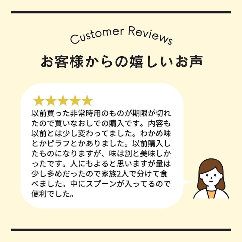 保存食なのに日常食として利用してます。ご飯類、パスタも説明書きの倍の時間蒸らして食べると食感も味も良くなります。