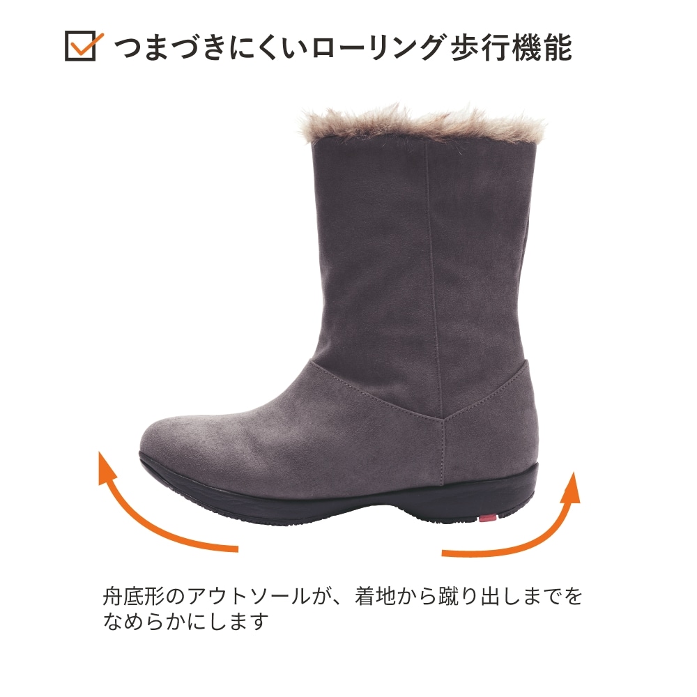 雪が溶けてベタベタになった道も防水機能のおかげで濡れることなく、快適でした。靴に少し厚みがあるので、歩きやすく、地面の寒さからも守ってくれました。