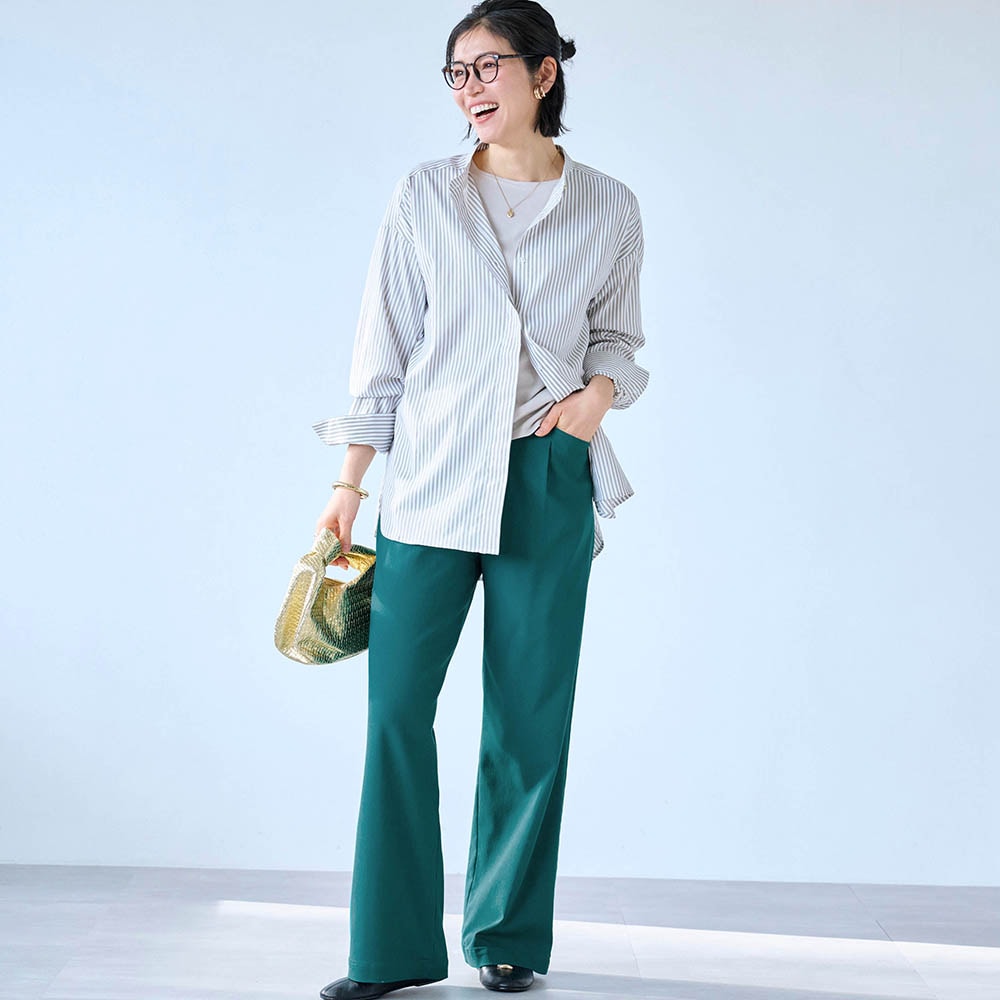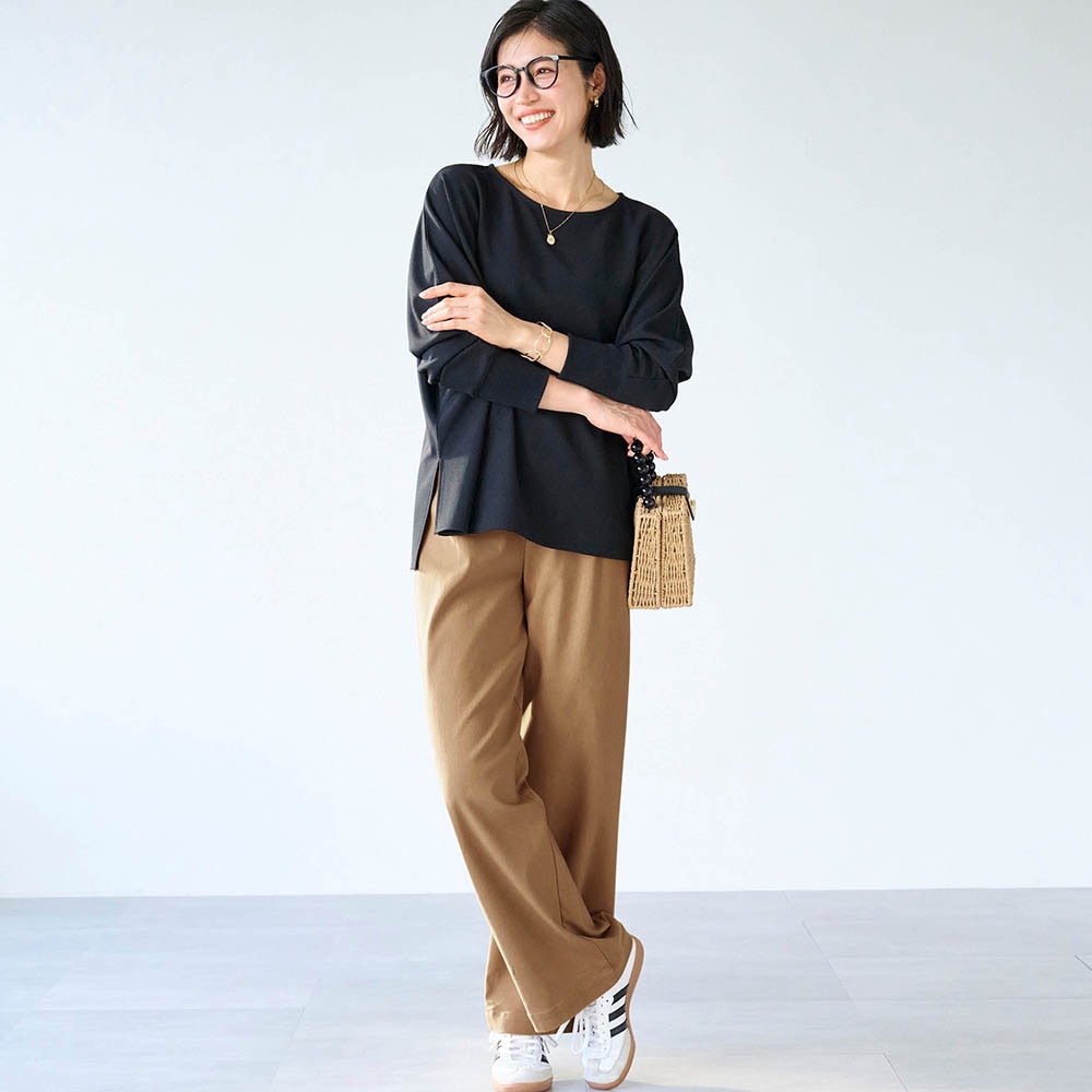 他の方のレビューを見てワンサイズ小さいものを購入したところ、ぴったりサイズでした。 生地が厚いので履き心地がよく、ストンときれいなシルエットに見えるように思います。 色違いも欲しくなりました。