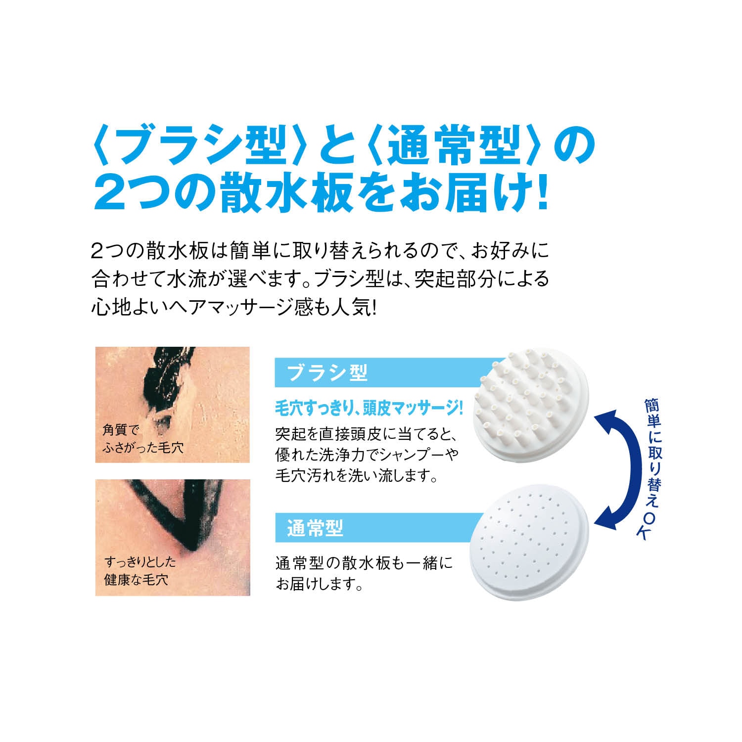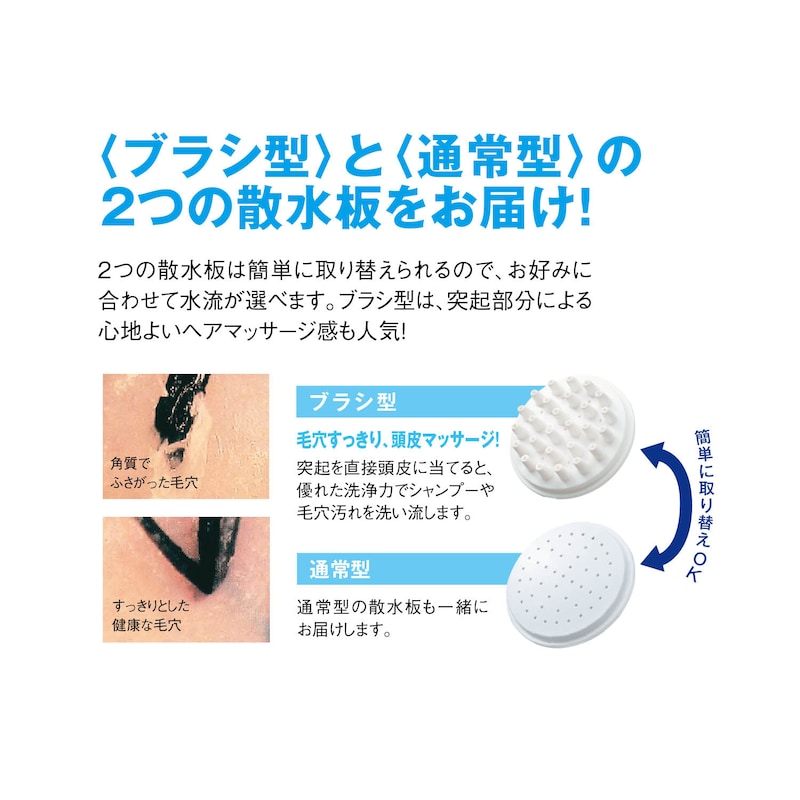 ●肌あたりの強いお湯の刺激が心地いい!通常の水流でもお使いいただけるように、「通常型」の散水板も一緒にお届け