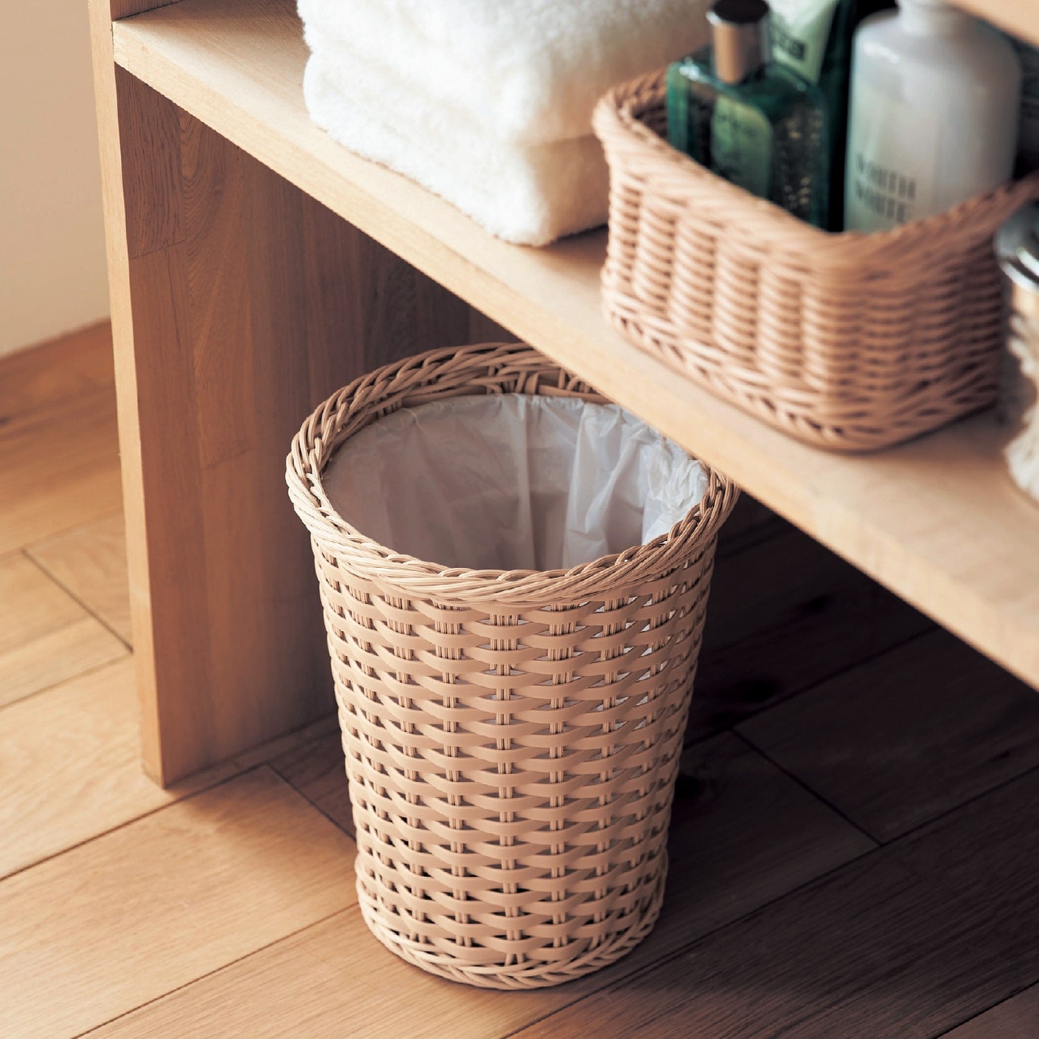 作りはしっかりしているし見た目も良いですが、レビューにあるように大きいほうのゴミ箱でもやはり小さい。