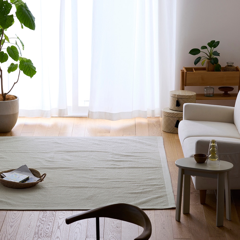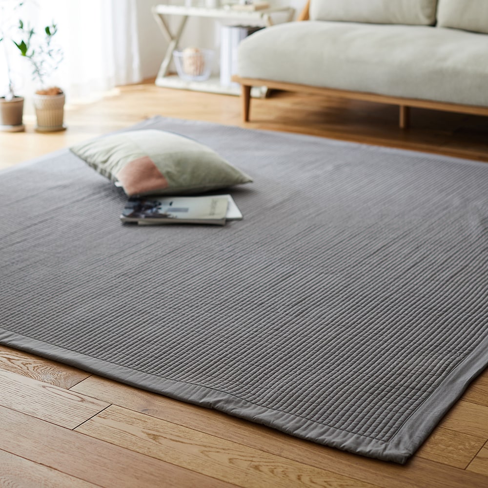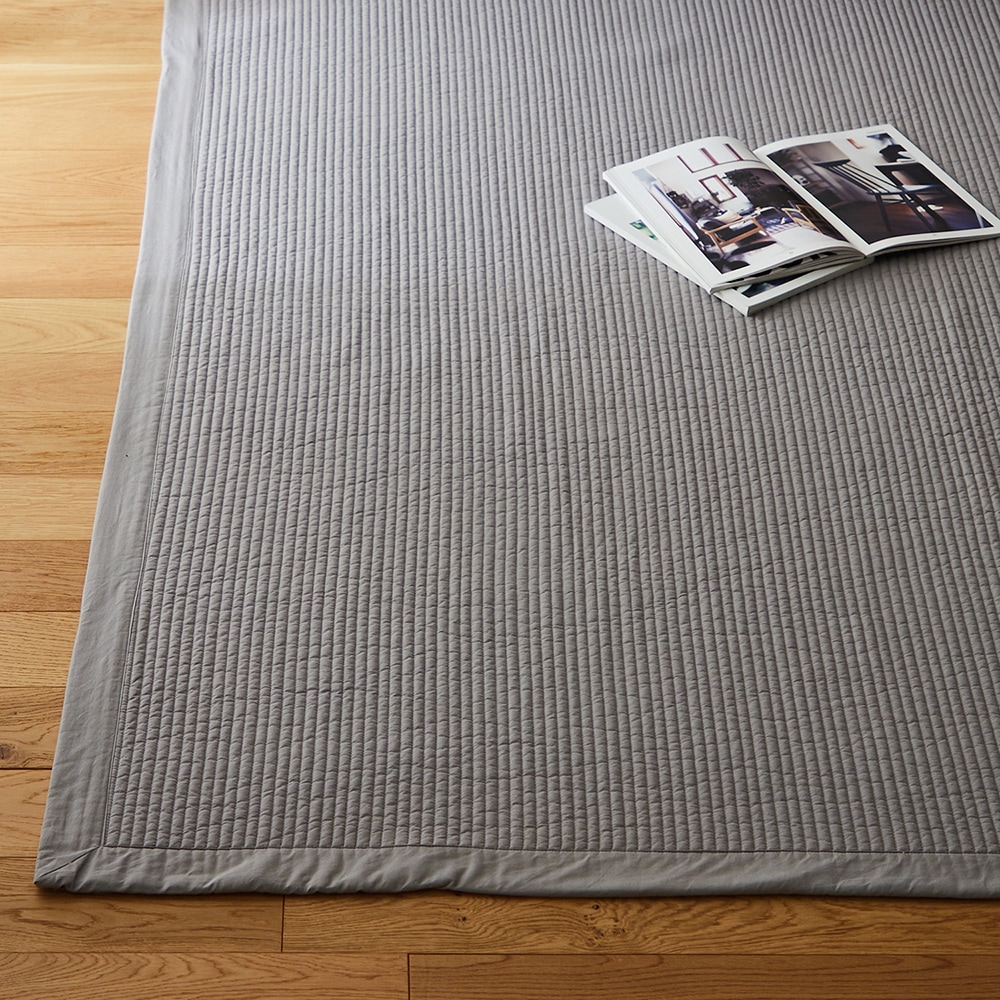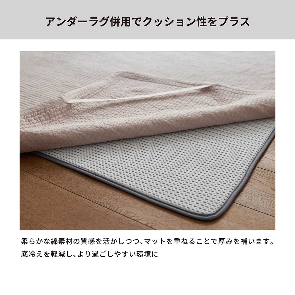 思ったよりハリがあります。 写真ではもっとくたっとしているのをイメージしてたので逆に良かったです。 コンパクトに畳めるし、軽いのもありがたいです。 これ1枚では薄いかな?という感じですが、私はホットカーペットの上に敷いて使用するのでいい感じです。