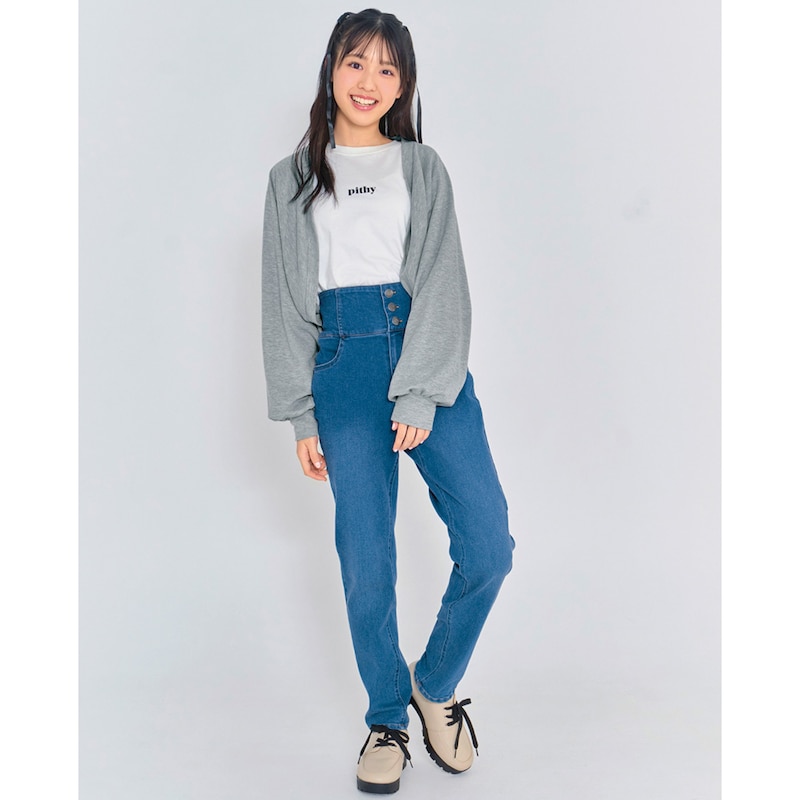 無難な色合いでデニムやワイドパンツと合わせています。