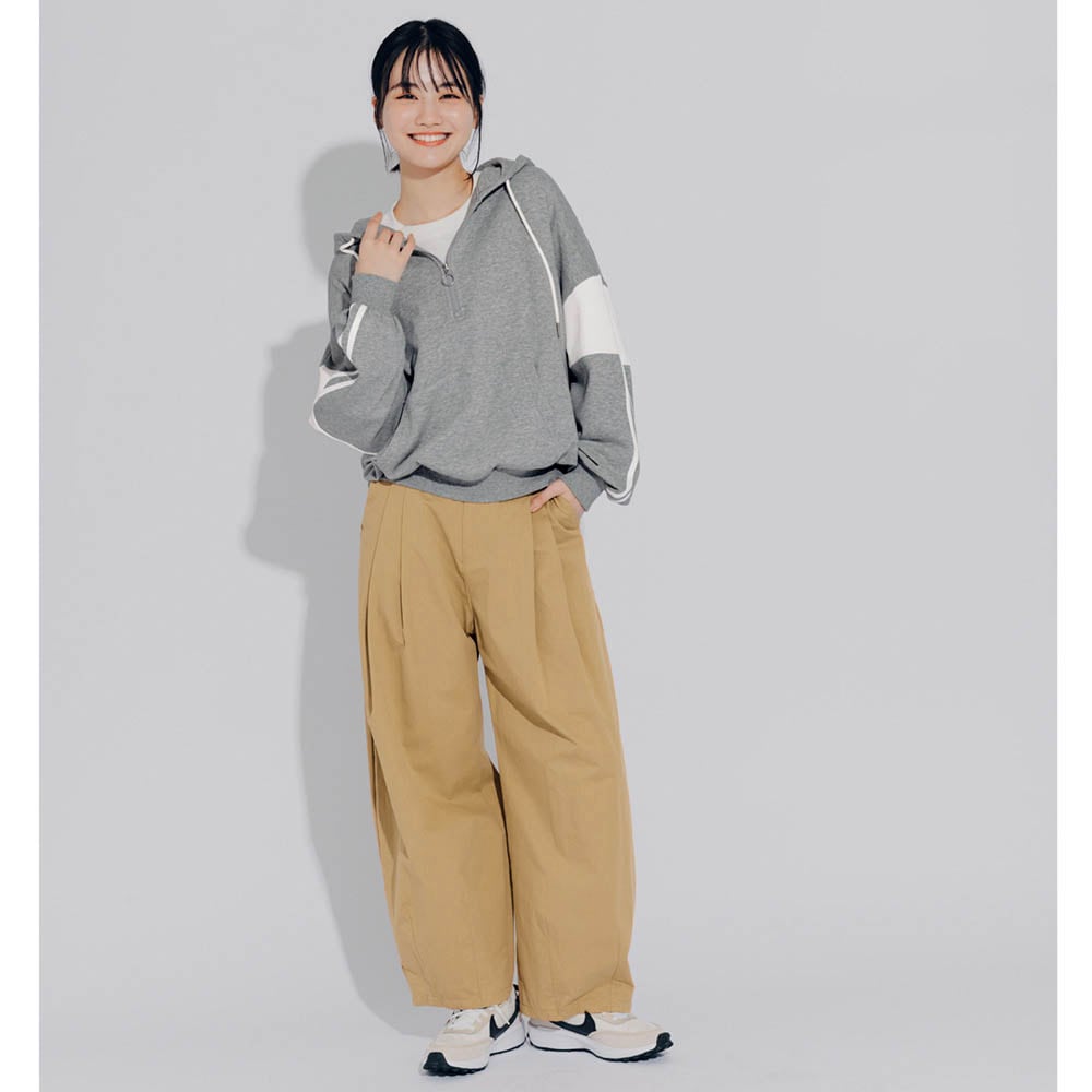 カジュアルなハーフジップパーカはボリューム感が◎