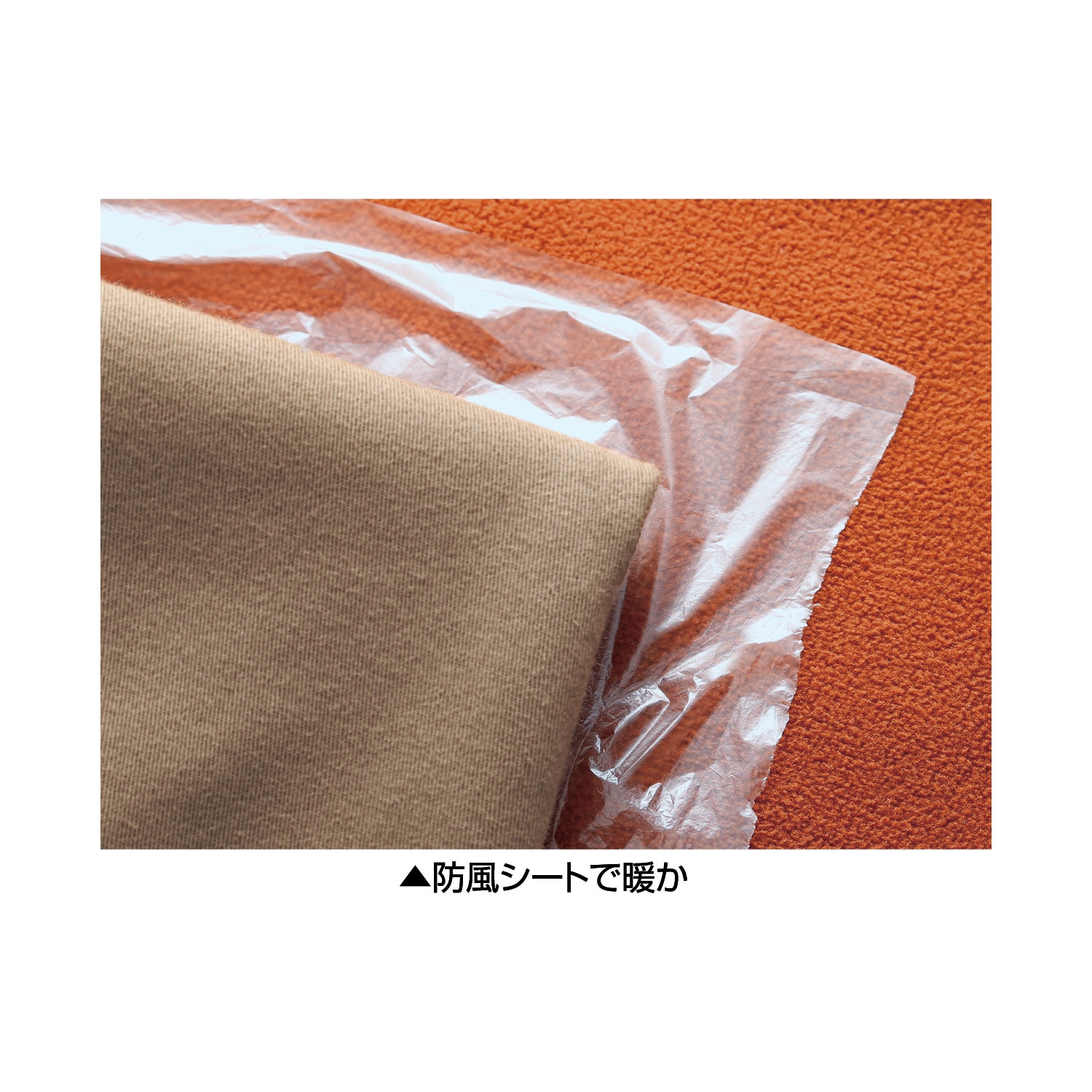 表面と裏面の間に防風シートが入っているので、風の侵入を防ぎ、暖かさを保ちます。ウォッシャブル仕様でお手入れも簡単です。