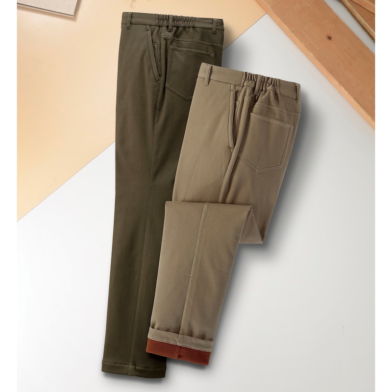 防風裏フリースストレッチ脇ゴムチノパン同サイズ2色組