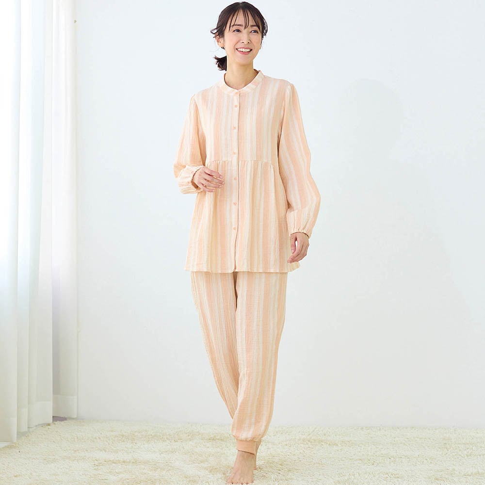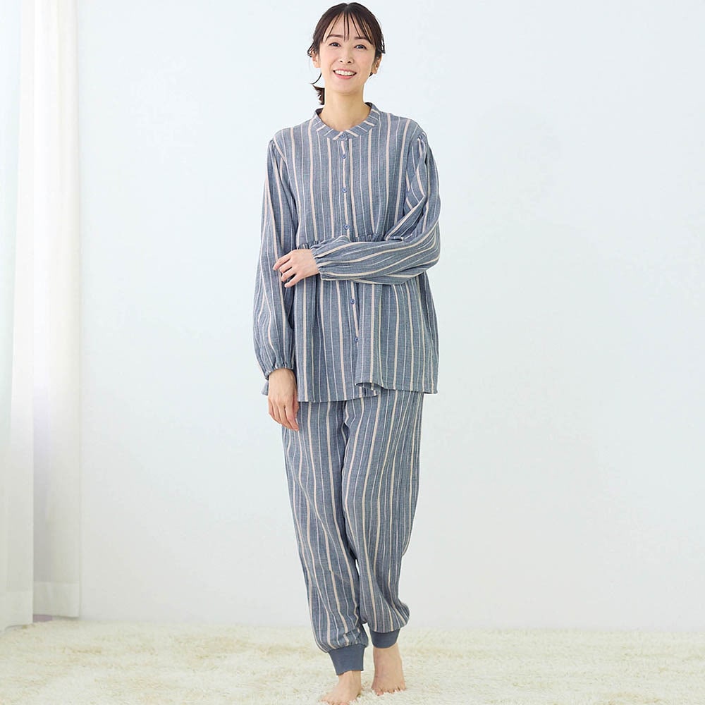 ガーゼ素材のパジャマを探していました。ズボンの裾がリブになっているのと袖がゴムになっているのが購入の決め手です。着心地は抜群でした。
