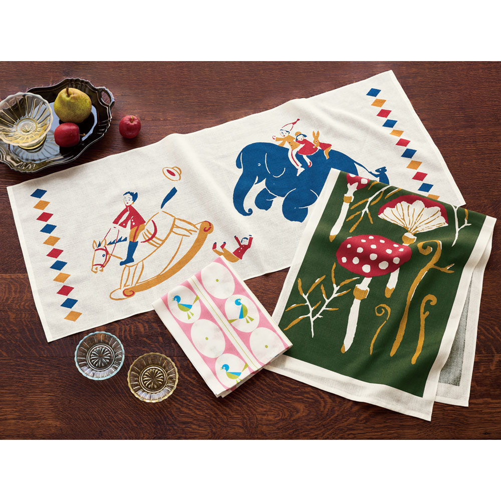 薄手なので、手や汗を拭いたり、アートとしてお部屋に飾ったり、お弁当を包んだり、小物の目隠しとして掛けたりと、マルチに使えます。