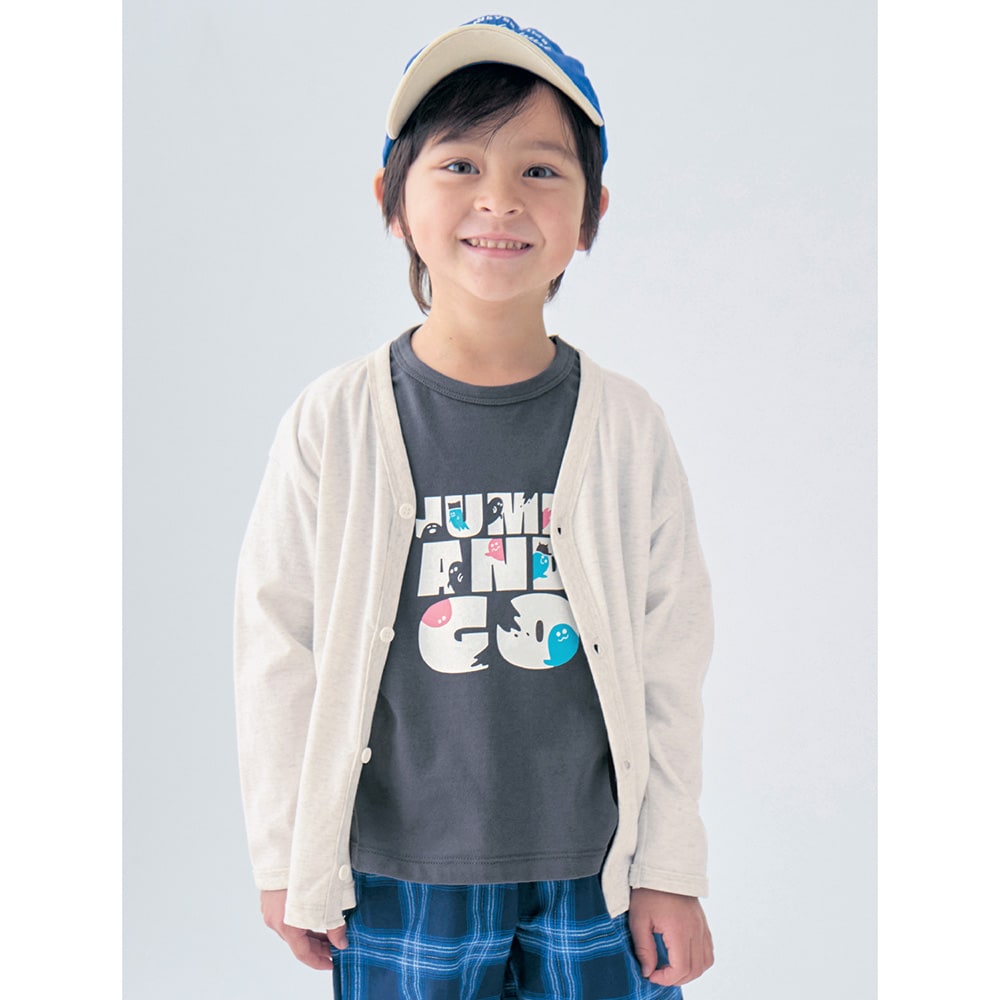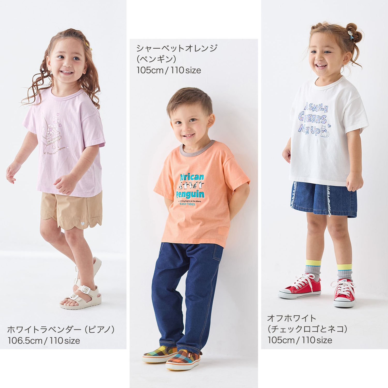 • オフホワイト(チェックロゴとネコ)名札ココフェルトなし/モデル身長105cm・110サイズ着用
