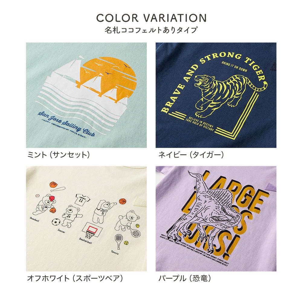 • パープル(恐竜)名札ココフェルトあり/モデル身長129cm・130サイズ着用