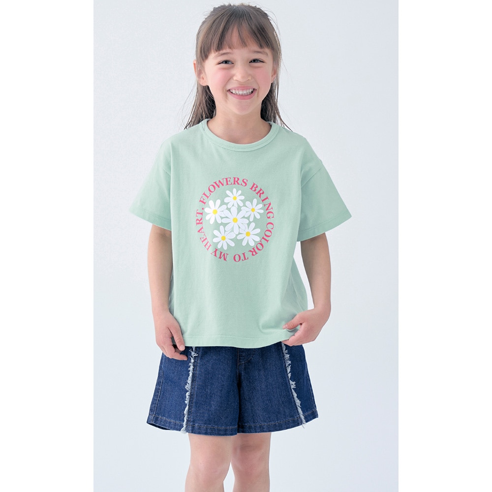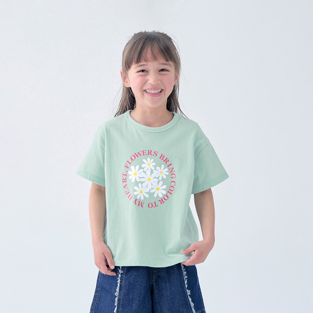 • ニュアンスミント(フラワーロゴ)名札ココフェルトなし/モデル身長111cm・サイズ110
