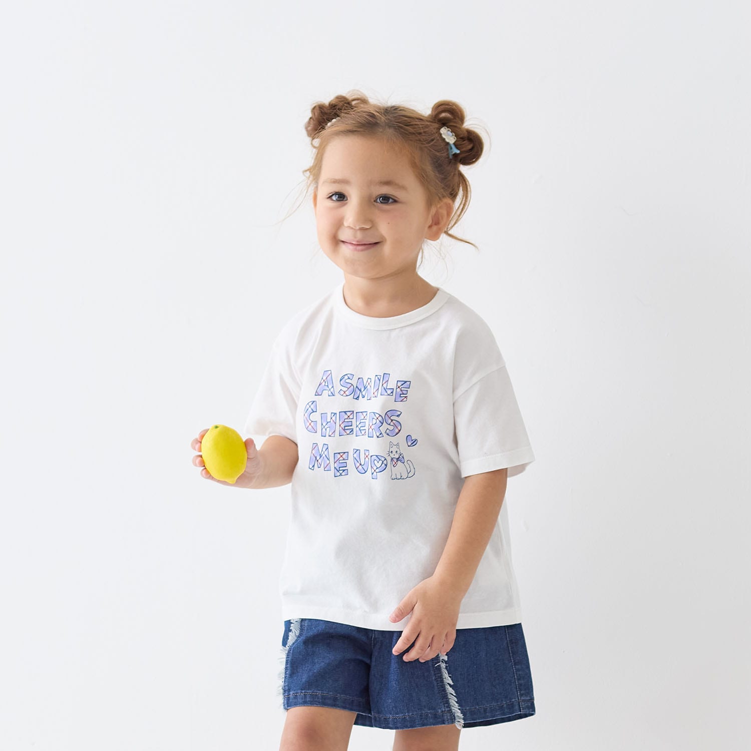 オフホワイト(チェックロゴとネコ)名札ココフェルトなし/モデル身長105cm・110サイズ着用