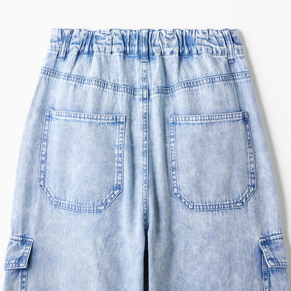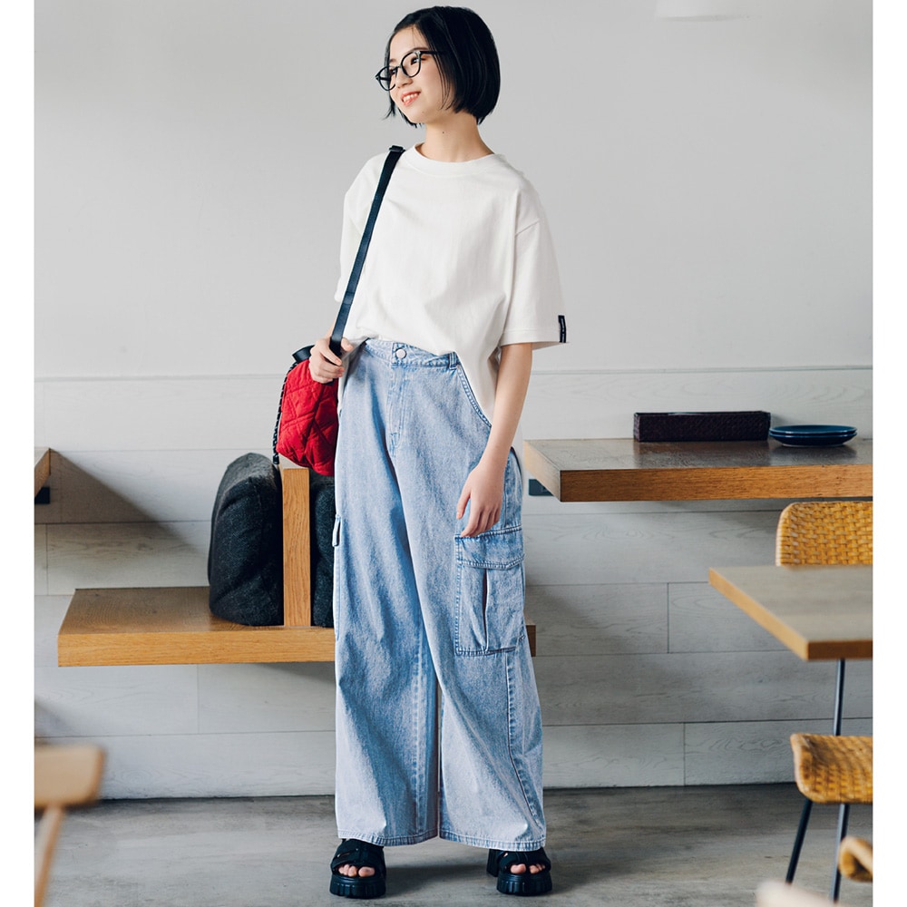 140センチ弱で、着丈はスニーカーでピッタリ。ウエストは少し緩め。